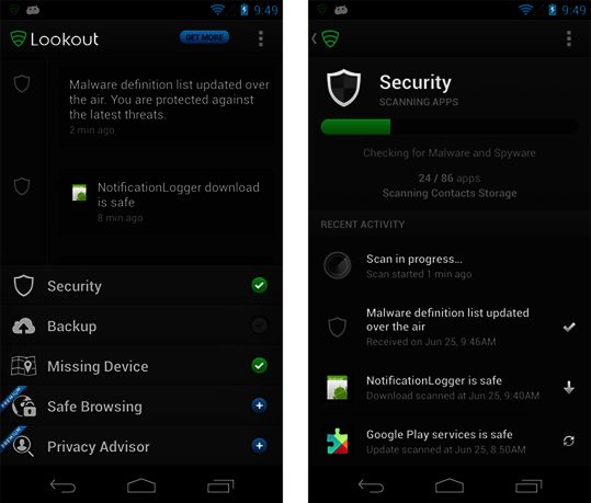 Anti-Theft (Remote-Lock/ Remote-Wipe/ Locate): Das Gerät lokalisieren, sperren oder die enthaltenen Daten löschen, wenn es gestohlen wurde.