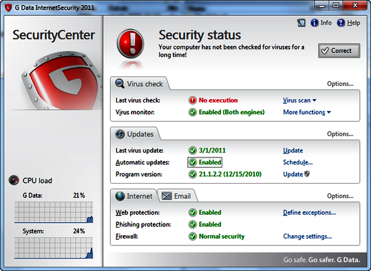 Im Januar, Februar und März 2011 hat AV-TEST 22 Sicherheitsprodukte in ihrer Standardkonfiguration untersucht. Es wurden immer die aktuellsten öffentlich verfügbaren Versionen der Produkte für den Test verwendet. Diese konnten sich jederzeit per Online-Update aktualisieren und ihre „In-the-Cloud“-Services nutzen. AV-TEST berücksichtigte nur realistische Testszenarien und prüfte die Produkte gegen aktuelle Bedrohungen. Die Produkte mussten ihre Fähigkeiten unter Einsatz sämtlicher Funktionen und Schutzebenen unter Beweis stellen.