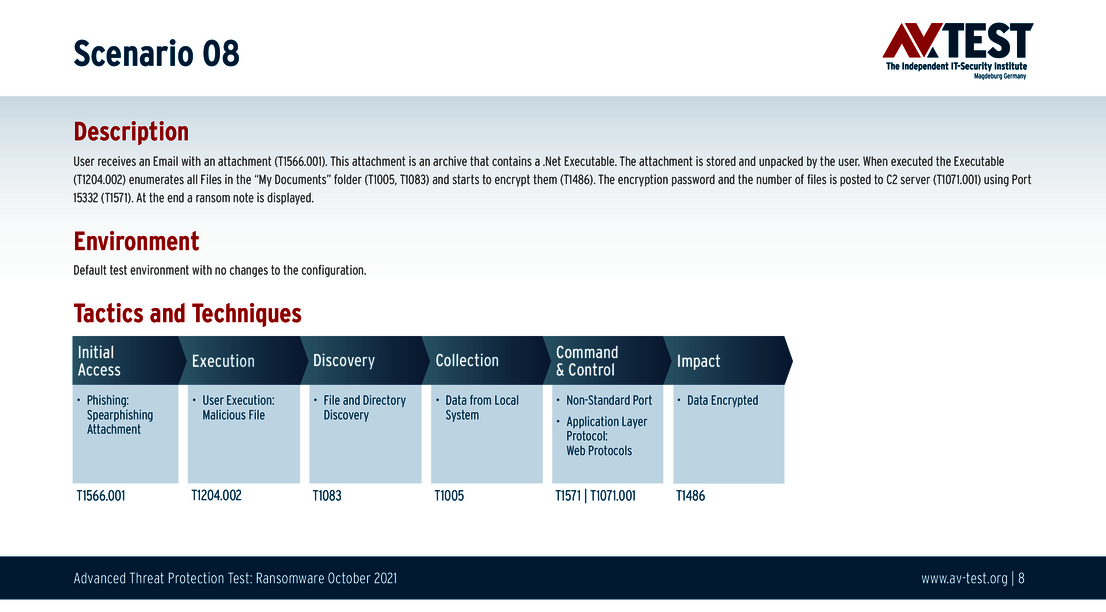 Klassische Security-Tests zeigen, wie gut sich Schutzpakete gegen teils zehntausende Trojaner, Viren & Co verteidigen. Aber was passiert, wenn eine neuartige Malware angreift? Wird diese erkannt, blockiert und gelöscht? Lässt sich ihre Ausführung komplett verhindern oder sind vielleicht einzelne Dateien am Ende doch verschlüsselt, wie das zum Beispiel bei Ransomware der Fall ist? Diese Fragen klärt der aktuelle Labortest von AV-TEST, bei dem jedes Schutzpaket 10 reale Angriffsszenarien mit Ransomware abwehren muss. Damit jeder Leser die Tests nachvollziehen kann, sind alle Ereignisschritte eines Angriffs pro Produkt in besonderen MITRE ATT&CK- Matrix-Grafiken festgehalten.