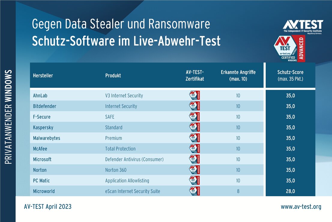 Man muss kein Security-Spezialist sein, um zu wissen, dass die Cyberbedrohung in den letzten Jahren massiv gewachsen ist. Angriffe auf Windows-Systeme, folgender Datendiebstahl oder Datenverschlüsselung und Erpressung zur Freigabe der Daten sind leider täglicher Fakt. Daher ist es wichtig, dass Schutzprodukte für private Nutzer oder Unternehmen technisch immer auf dem neuesten Stand sind und auch die perfidesten Attacken nicht nur erkennen, sondern auch wirklich aufhalten können. Genau diesen Punkt klärt der Advanced Threat Protection-Test mit 25 Schutzprodukten unter Windows 11. Das Labor hat die Untersuchung im März und April 2023 ausgeführt und nun die umfangreichen Daten veröffentlicht.