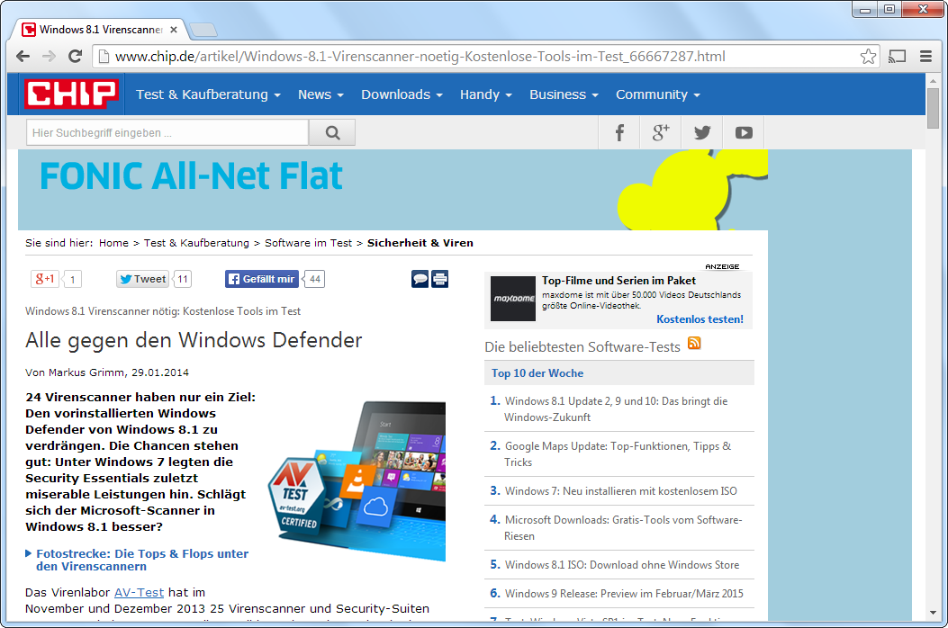 AV-Test: Sicherheitslösungen für Windows 8.1 im Real-World-Test