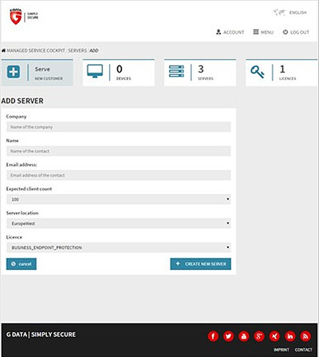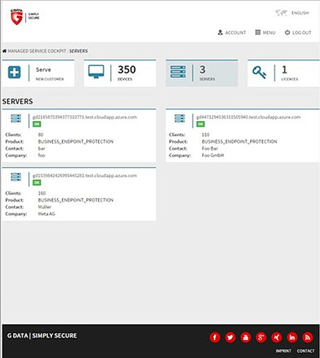 G DATA ist als einziger Antiviren-Hersteller beim Projektstart mit der speziell auf die Azure-Architektur abgestimmten Managed Endpoint Security vertreten. Die Skalierung der Cloud-Ressourcen erfolgt bequem per Dashboard beziehungsweise über einen vorkonfigurierten Management Server.