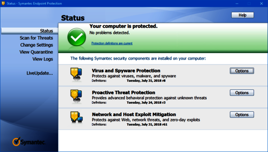 During July and August 2018 we continuously evaluated 18 endpoint protection products using settings as provided by the vendor. We always used the most current publicly-available version of all products for the testing. They were allowed to update themselves at any time and query their in-the-cloud services. We focused on realistic test scenarios and challenged the products against real-world threats. Products had to demonstrate their capabilities using all components and protection layers.