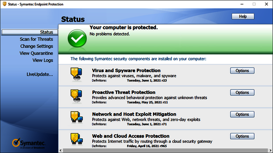 During May and June 2021 we continuously evaluated 19 endpoint protection products using settings as provided by the vendor. We always used the most current publicly-available version of all products for the testing. They were allowed to update themselves at any time and query their in-the-cloud services. We focused on realistic test scenarios and challenged the products against real-world threats. Products had to demonstrate their capabilities using all components and protection layers.