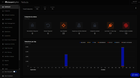 During September and October 2022 we continuously evaluated 19 endpoint protection products using settings as provided by the vendor. We always used the most current publicly-available version of all products for the testing. They were allowed to update themselves at any time and query their in-the-cloud services. We focused on realistic test scenarios and challenged the products against real-world threats. Products had to demonstrate their capabilities using all components and protection layers.
