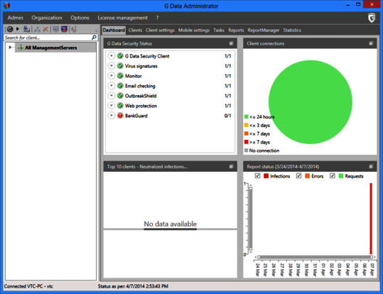 During March and April 2014 we continuously evaluated 9 endpoint protection products using settings as provided by the vendor. We always used the most current publicly-available version of all products for the testing. They were allowed to update themselves at any time and query their in-the-cloud services. We focused on realistic test scenarios and challenged the products against real-world threats. Products had to demonstrate their capabilities using all components and protection layers.