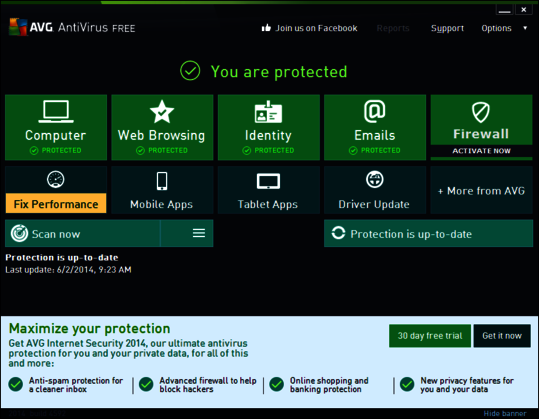 During May and June 2014 we continuously evaluated 23 home user security products using their default settings. We always used the most current publicly-available version of all products for the testing. They were allowed to update themselves at any time and query their in-the-cloud services. We focused on realistic test scenarios and challenged the products against real-world threats. Products had to demonstrate their capabilities using all components and protection layers.