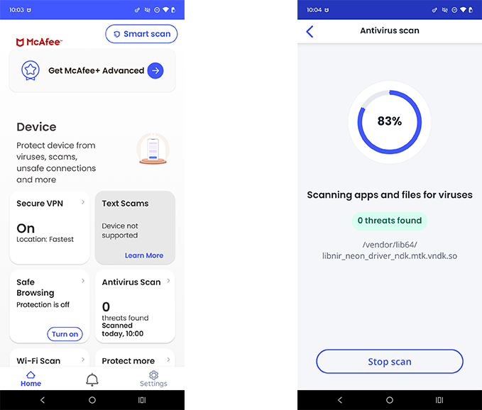 Wi-Fi Advisor/Check: Examines whether the Wi-Fi connection is secure or vulnerable