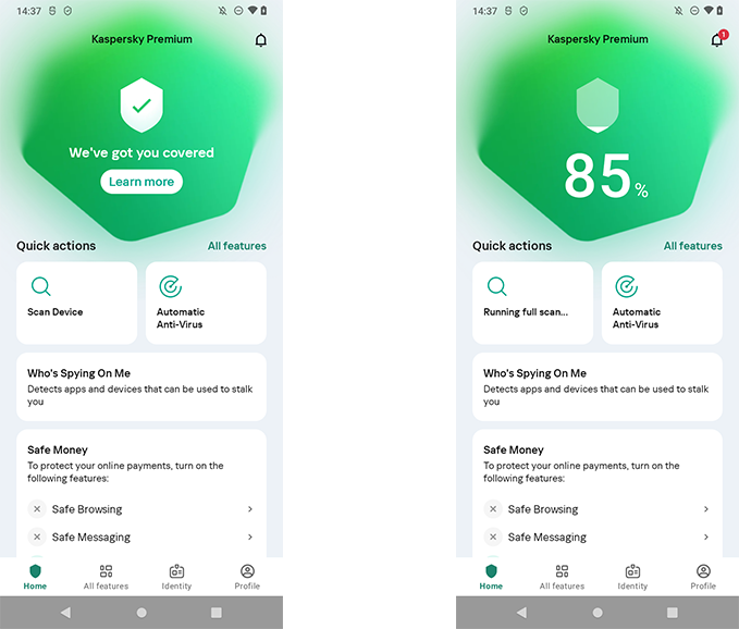 | Protection against the latest Android malware attacks in real time 2,963 samples used | 99.8% | 100% |