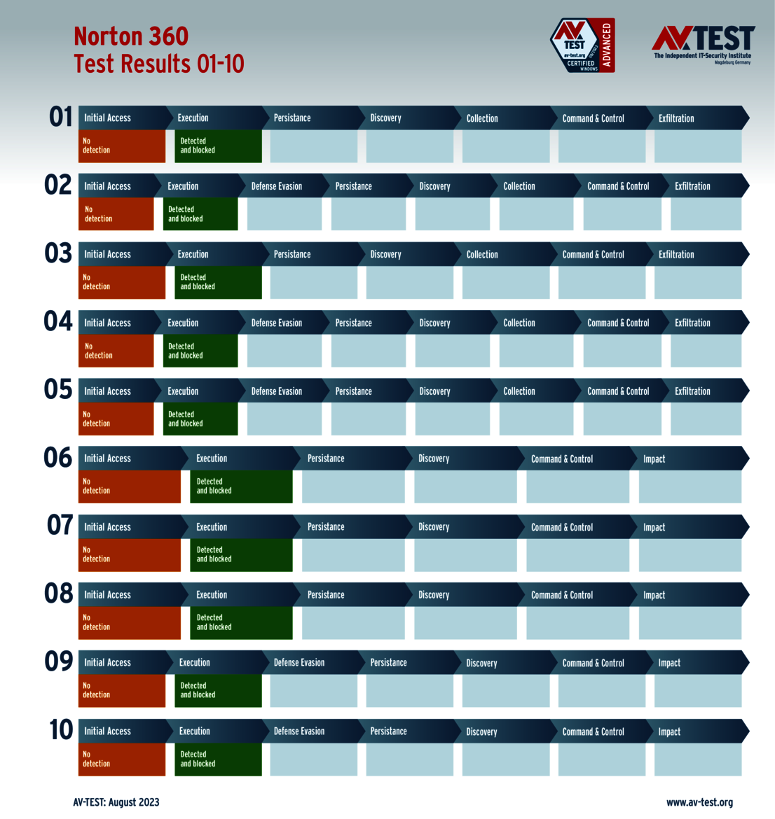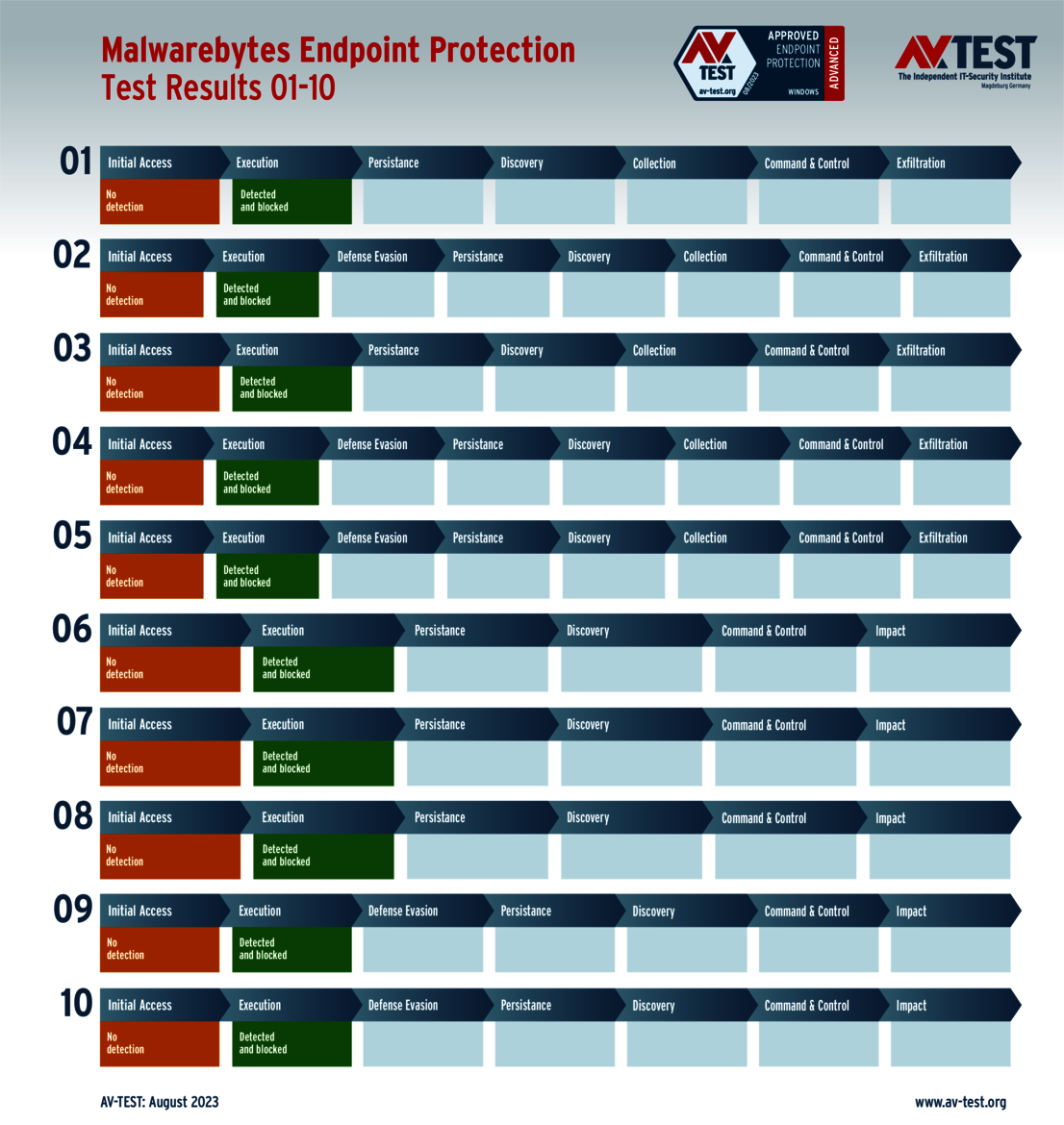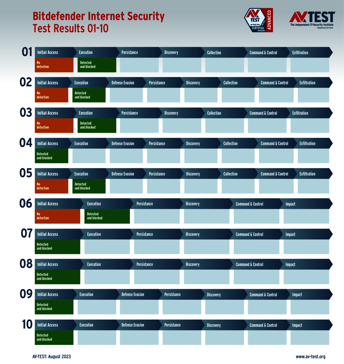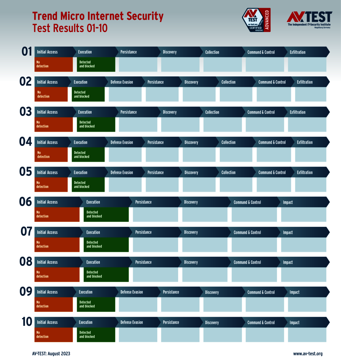 In the 10 test scenarios, the attackers deployed the latest techniques, such as DNS TXT Record, encrypted connections or even the Rust programming language. But the protection programs know all these variants and respond accordingly in the detection and defense. All in all: nearly exemplary performance!