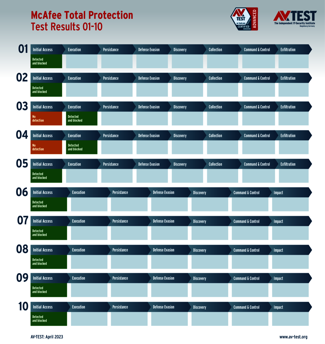 All attack scenarios are documented according to the standard of the MITRE ATT&CK database. The individual sub-techniques, for example "T1566.001", are listed in the MITRE database for "Techniques" under "Phishing: Spearphishing Attachment". Each test step is thus defined among the experts and can be logically understood. In addition, all attack techniques are explained, along with how successful the malware is.