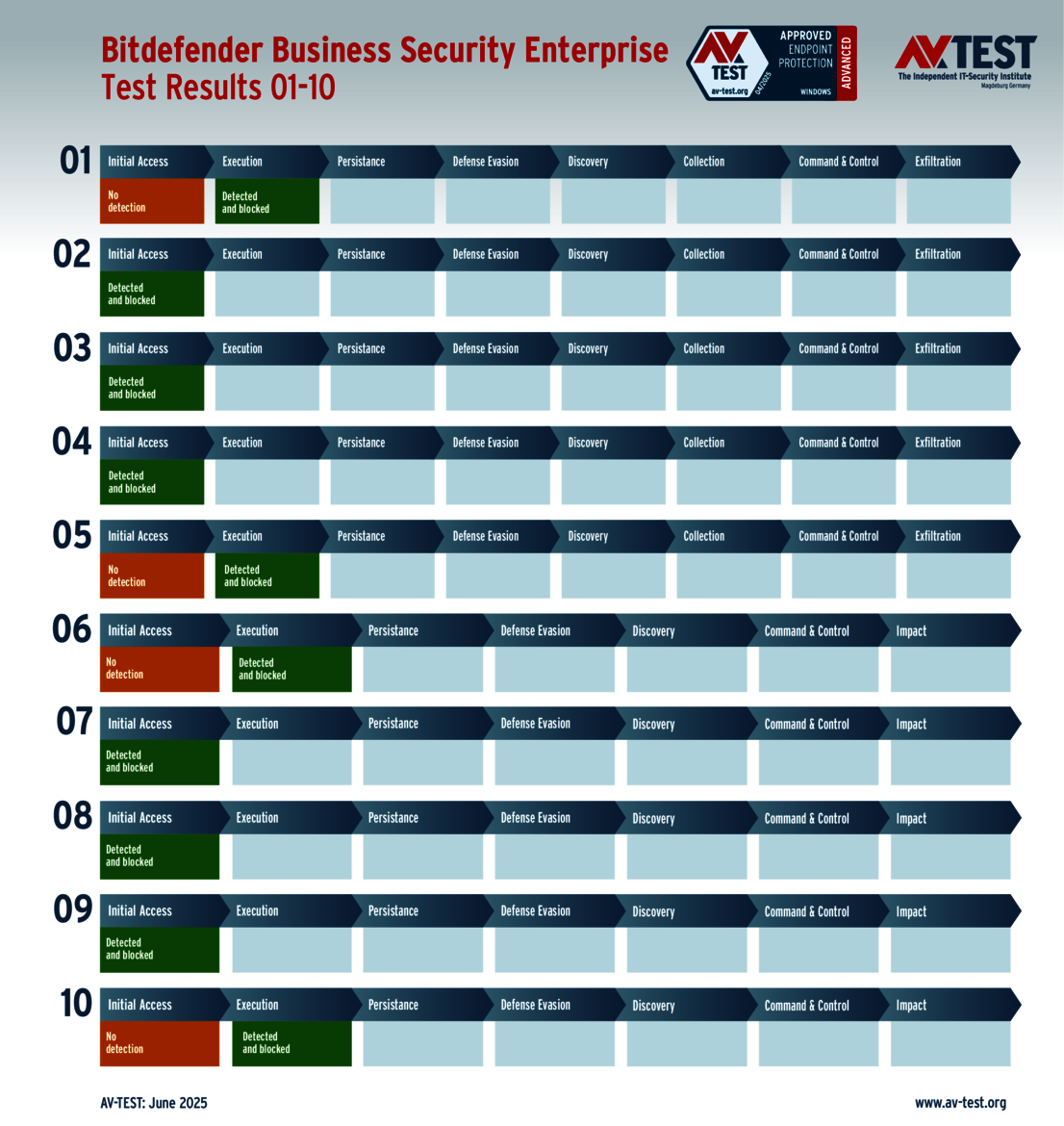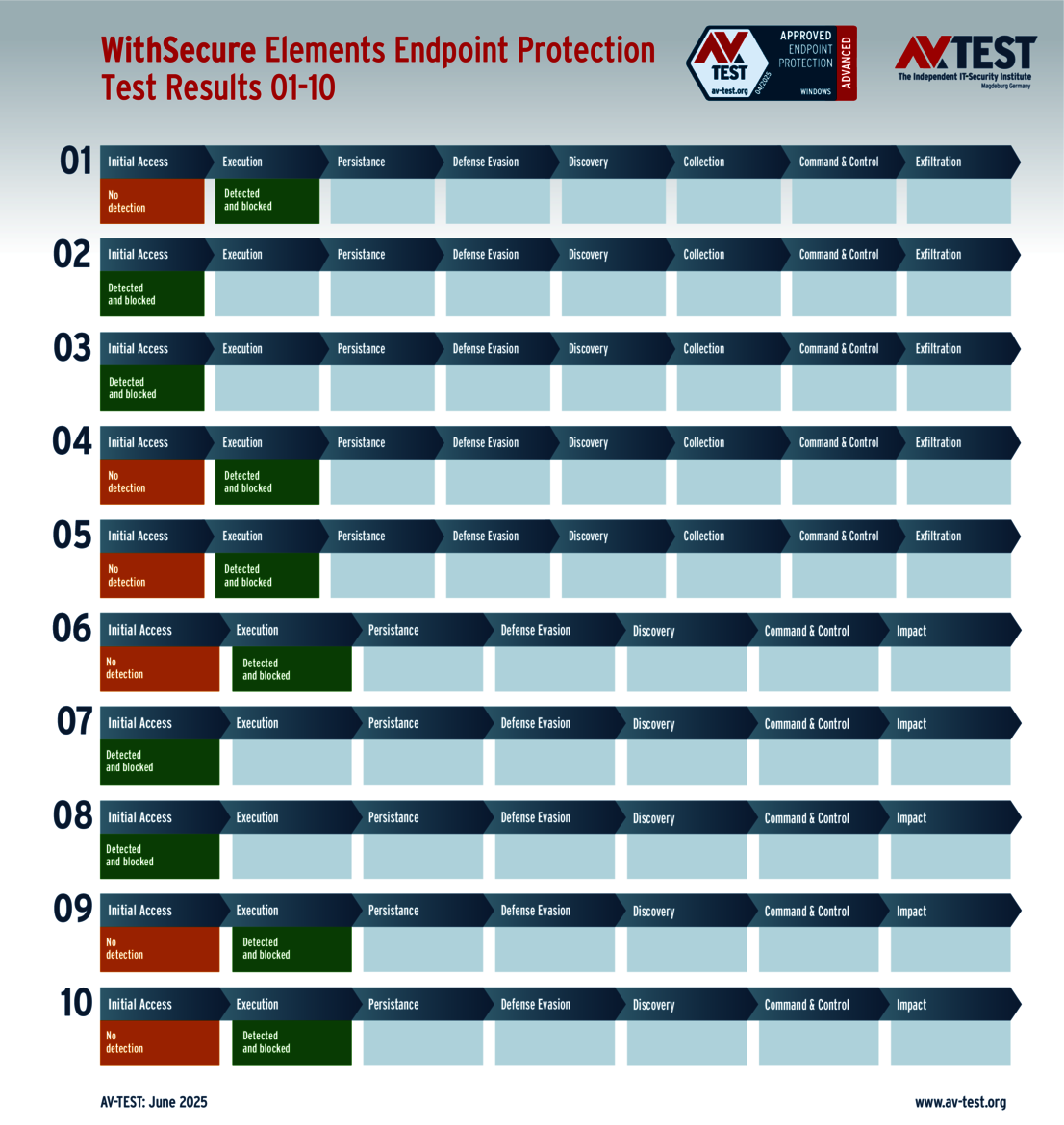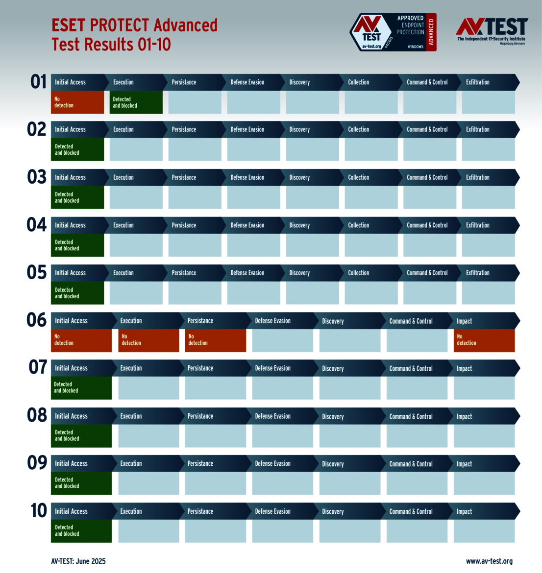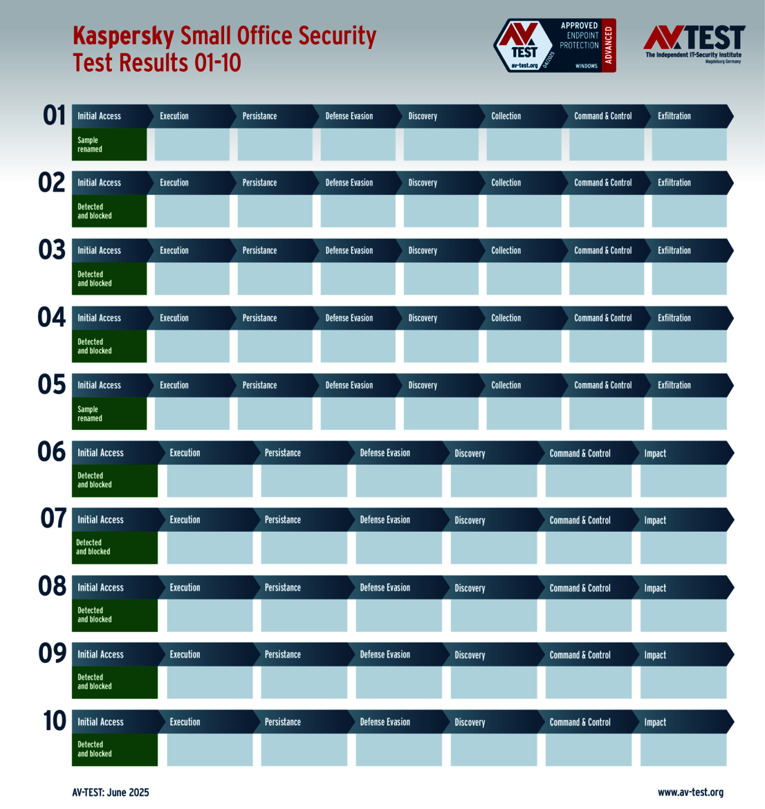 The team of experts documents all defensive steps – whether successful or not – for each product in a matrix in accordance with the MITRE ATT&CK standard. This allows the test process to be precisely tracked.