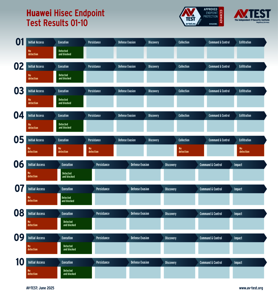 Huawei's solution did not recognize a data stealer and allowed it free reign, including theft of data. This meant that 31 out of 35 points were achieved – 4 points less than the maximum number.