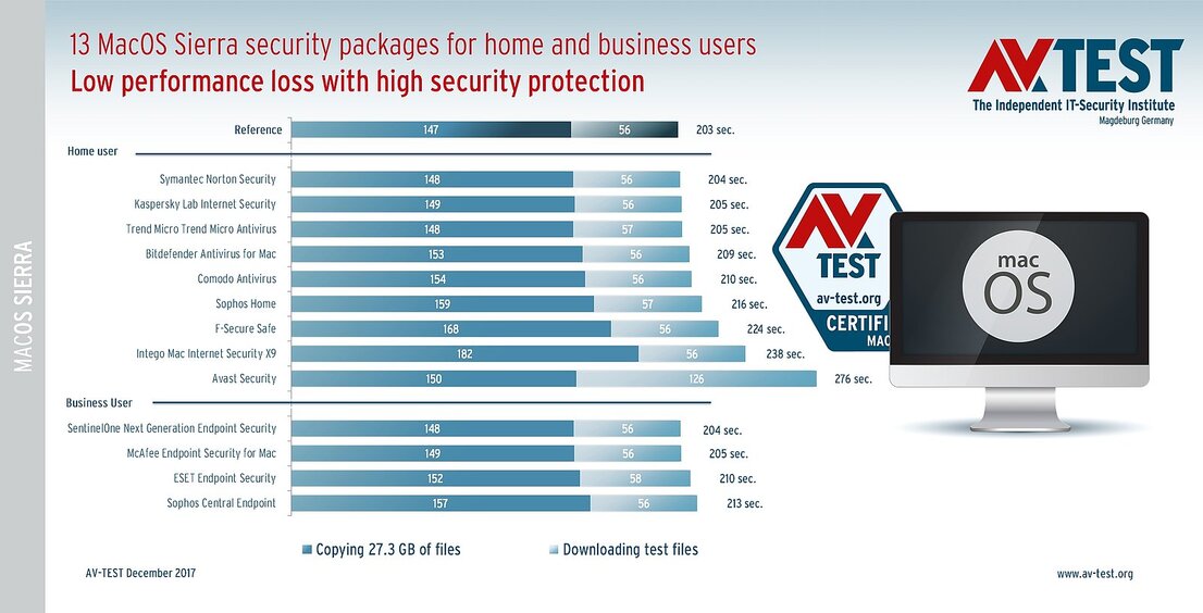 The laboratory of AV-TEST examined a total of 13 products under MacOS Sierra. The first 9 on the list are for home users:
