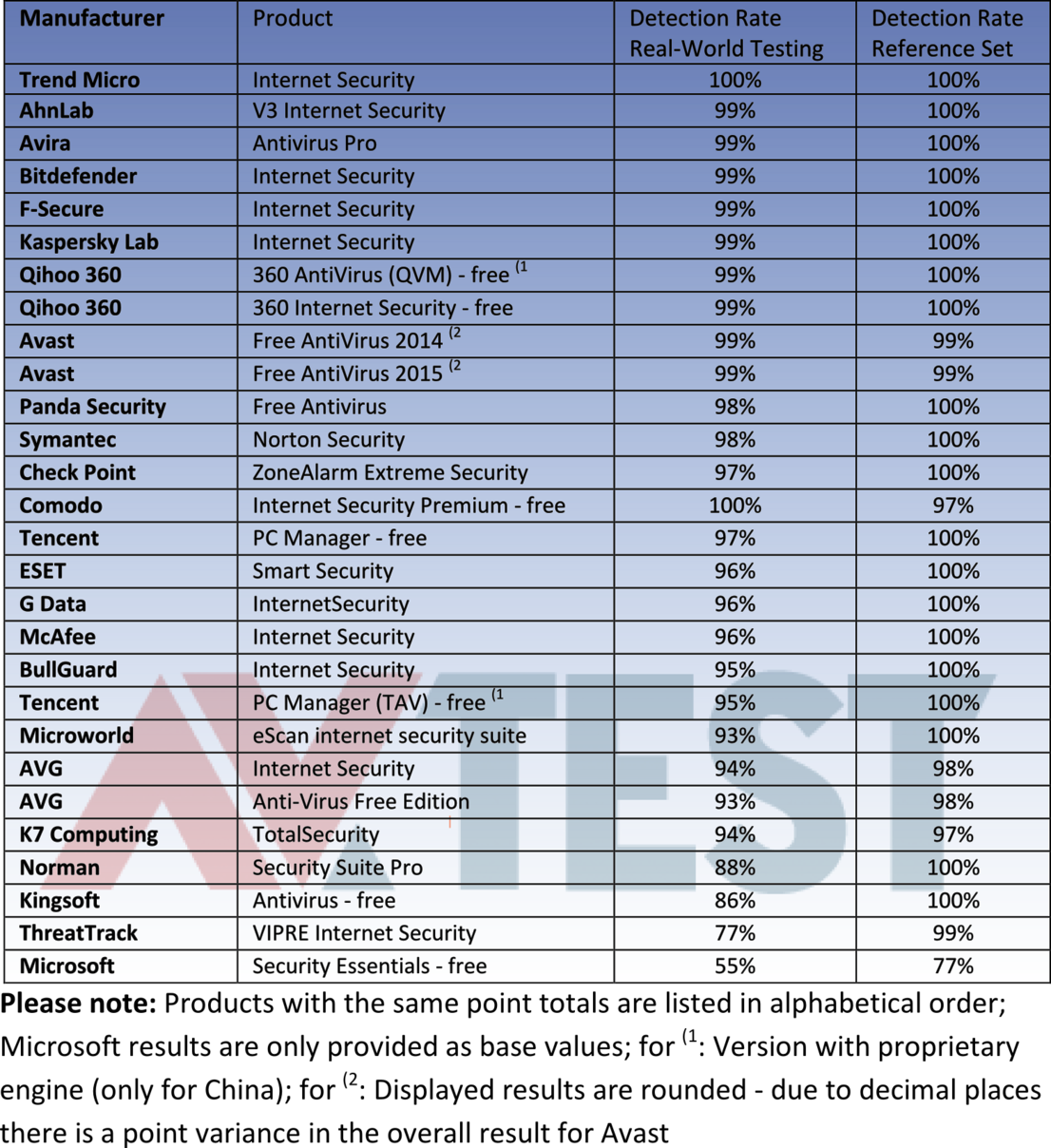In the real-world test, the products revealed a somewhat weaker performance than normal. For instance, only Trend Micro and Comodo were 100 percent capable of detecting all the threats. 9 other products did manage to reach 99 percent.