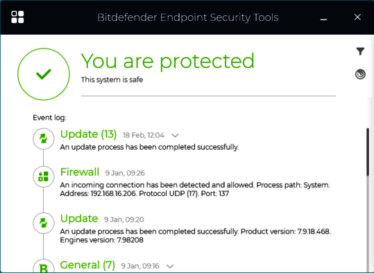 | Detección de los malware más extendidos y más frecuentes durante las últimas 4 semanas (conjunto de referencia de AV-TEST) 15.629 muestras utilizadas | 100% | 100% | 100% |