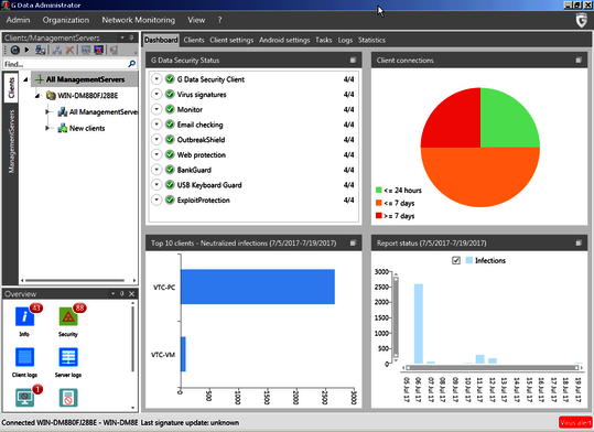 Durante los meses de julio y agosto de 2017, en AV-TEST hemos examinado la configuración establecida por los proveedores de 14 productos de seguridad destinados a las empresas (Endpoint Protection). En las pruebas siempre hemos utilizado las versiones más actuales de los productos de acceso al público las cuales se pudieron actualizar en cualquier momento y también utilizar sus servicios "en la nube”. Solo hemos tenido en cuenta escenarios de pruebas realistas y hemos comprobado los productos contra las amenazas actuales. Los productos han tenido que demostrar sus capacidades aplicando todas sus funciones y niveles de protección.