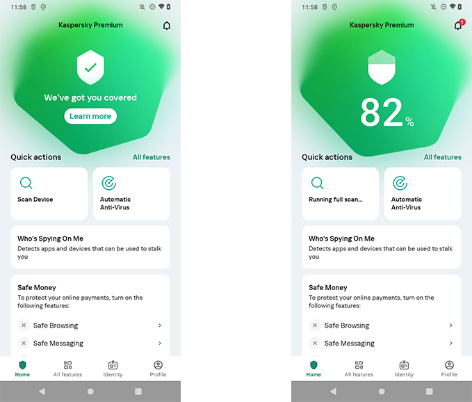 | Protección en tiempo real contra ataques del malware más reciente a dispositivos Android 2.896 muestras utilizadas | 99,9% | 100% |