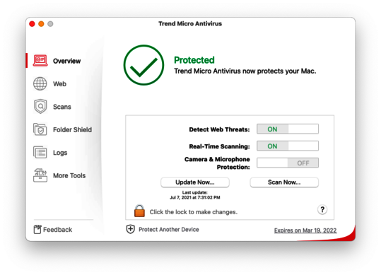Durante junio y julio 2021, evaluamos 7 productos de seguridad para el usuario doméstico para MacOS Big Sur. Siempre usamos la versión más actual de todos los productos para la prueba. Se les permitió actualizarse y consultar sus servicios en la nube. Nos centramos en la detección de malware, falsos positivos y el rendimiento.