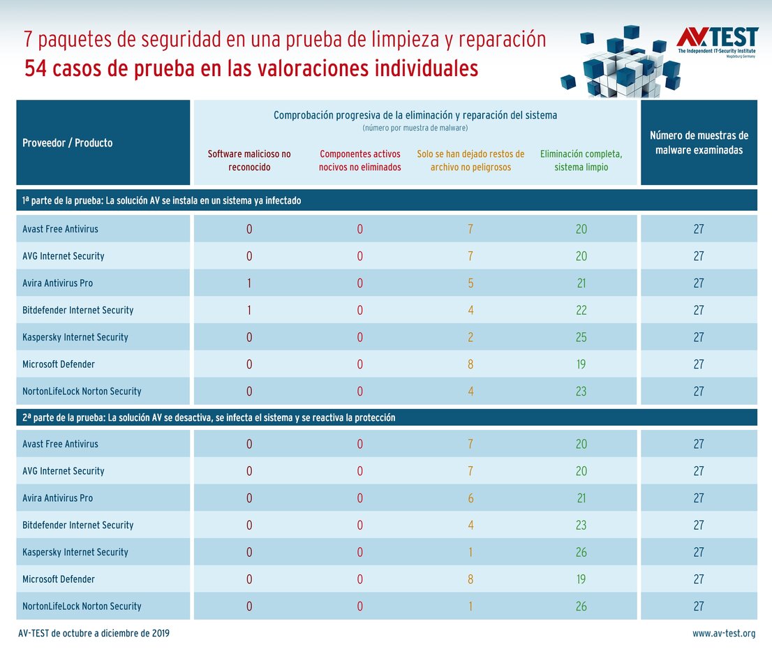La suite de seguridad obtuvo el mejor resultado en la prueba de limpieza y reparación