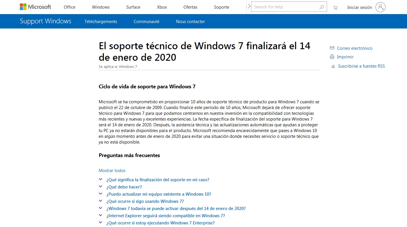 En enero de 2015, Microsoft ya dio un primer toque de alerta finalizando el soporte regular para Windows 7. Dentro de tan solo un año, el 14 de enero de 2020 sonará la gran campanada final que marque el fin del llamado soporte extendido. A partir de esa fecha no habrá más actualizaciones contra fallos, para aumentar la seguridad o para aplicaciones internas de Microsoft. En el caso de los usuarios privados, a partir de ese momento será la suite de seguridad instalada la que tenga que hacerse cargo por completo de la seguridad. Las empresas lo tienen un poco más fácil, ya que pueden adquirir un plazo adicional de 3 años. Microsoft ofrece las llamadas Extended Security Updates (ESU) hasta enero de 2023. No constan precios oficiales al respecto.