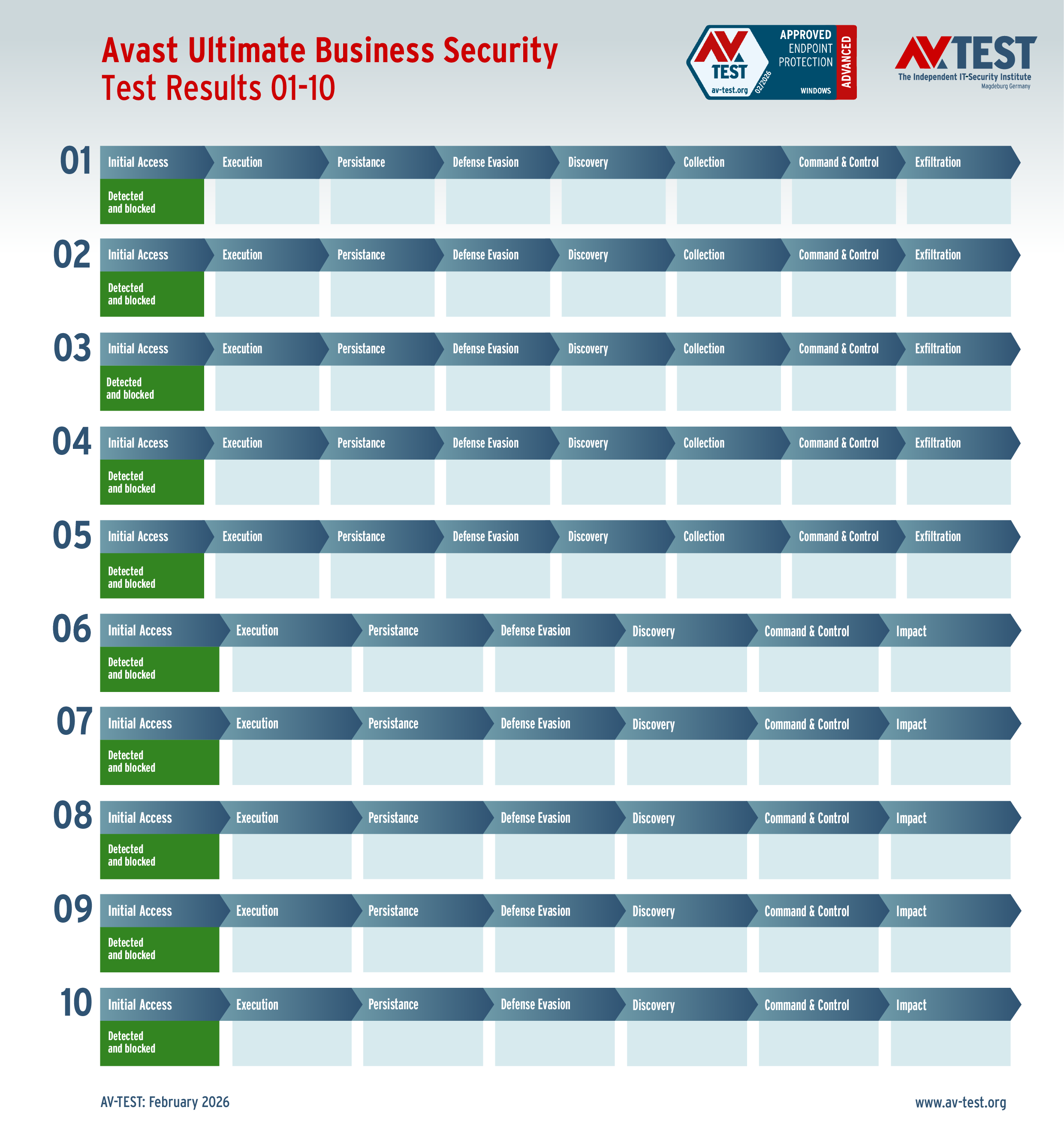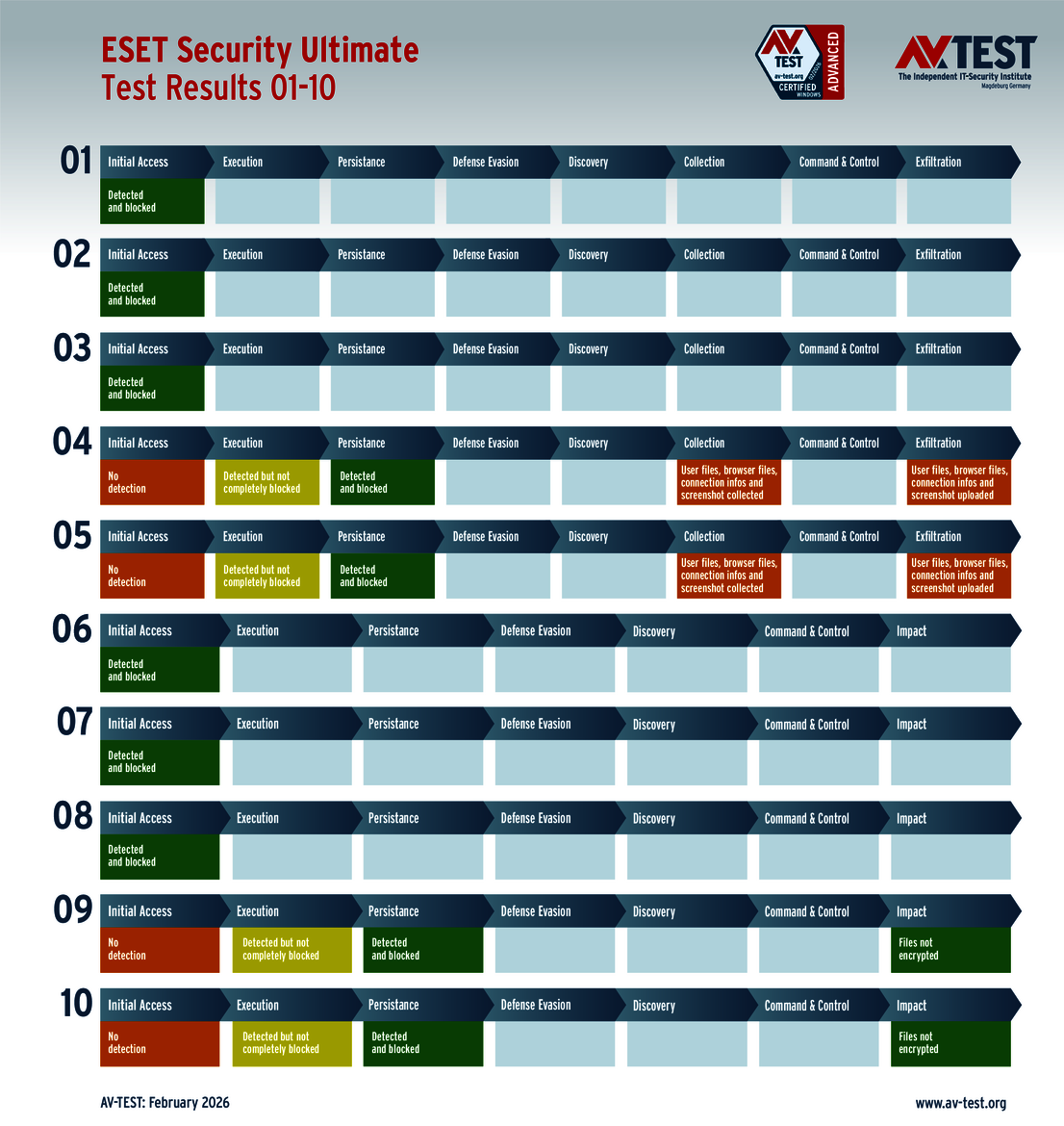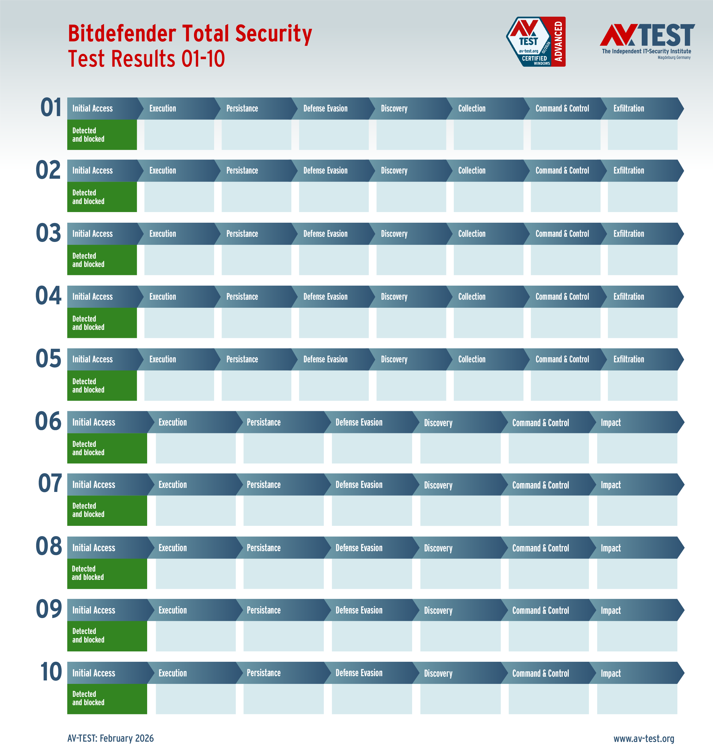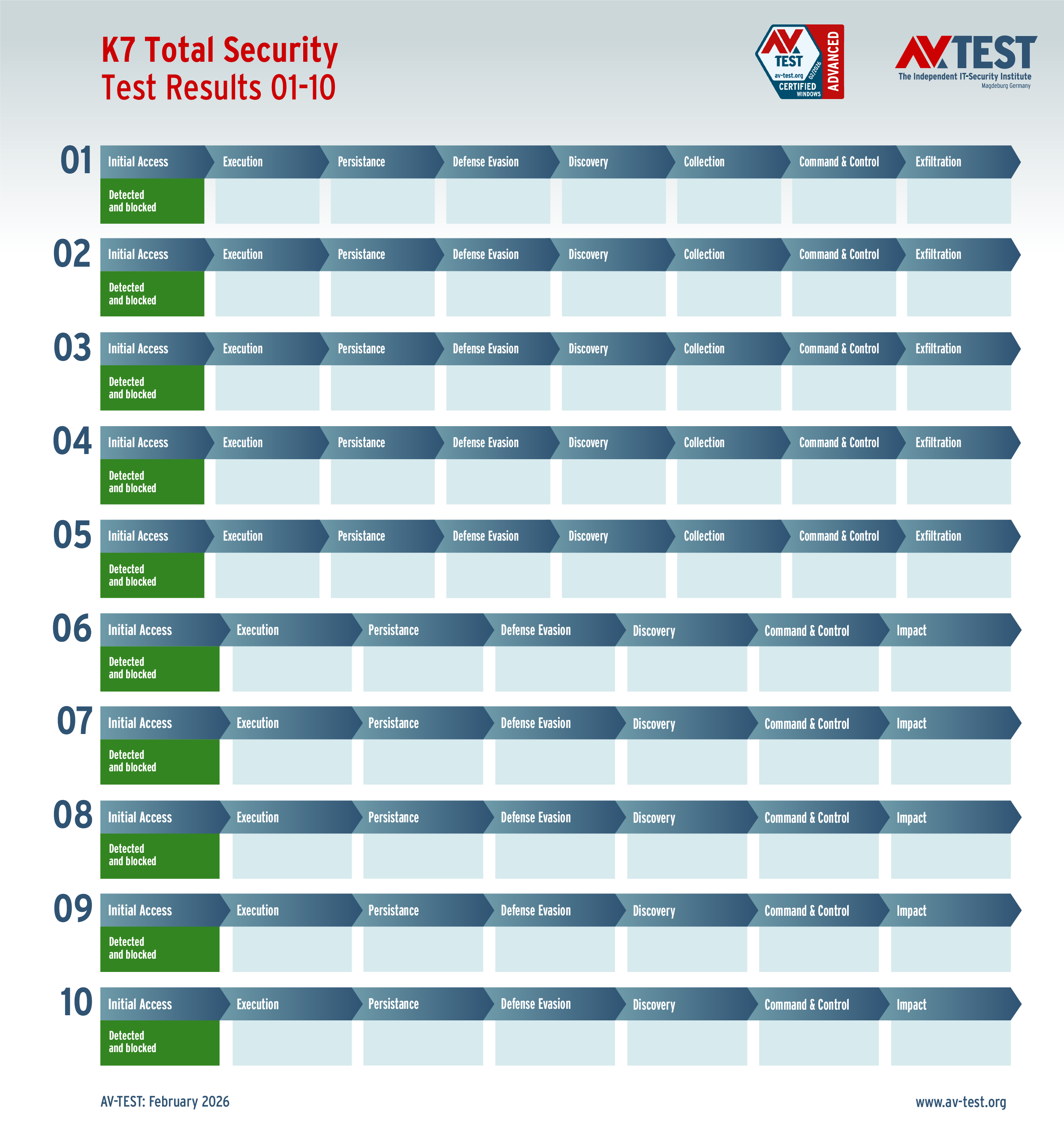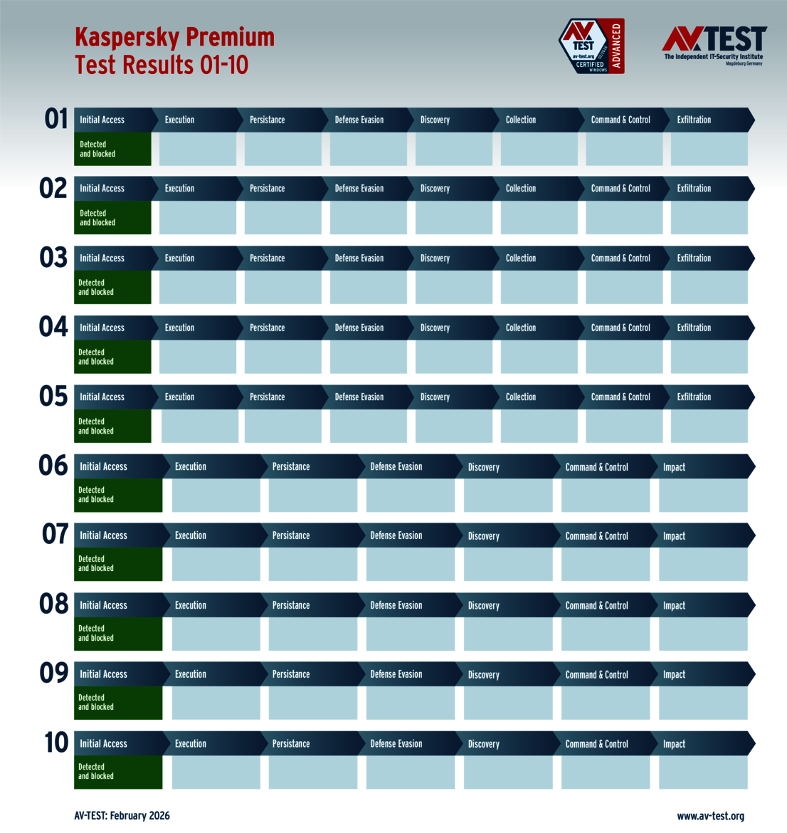 Todos los productos tienen que superar 5 escenarios de ataque con ransomware y ladrones de información respectivamente. Los examinadores puntúan esta tarea. En el caso de la defensa contra ladrones de información, pueden llegar a ser 4 puntos y en el de la defensa contra ransomware, 3 puntos. Si en un paso solo se consigue una defensa parcial, también es posible recibir medios puntos. Al final de la prueba, la máxima puntuación de protección obtenible es, por tanto, 35 puntos.