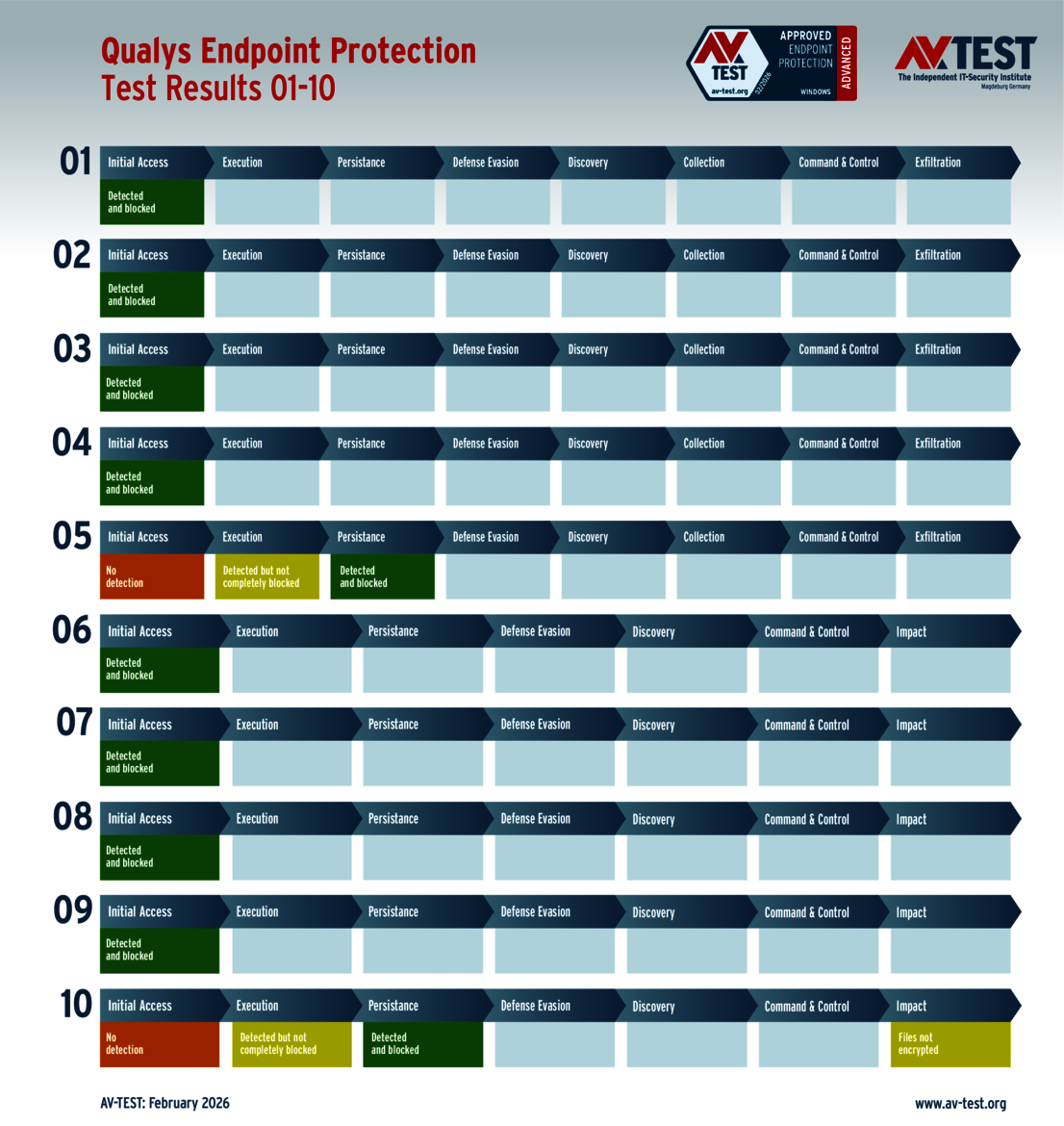 Las soluciones de Norton, Qualys y Sophos sí detectaron todos los programas maliciosos, pero en dos escenarios respectivamente no detuvieron al atacante de inmediato. Hizo falta que se activaran mecanismos de protección posteriores para ganar la partida a los atacantes, aislarlos y eliminarlos. Aquí también es interesante ver que todas estas soluciones tuvieron problemas iniciales en los escenarios de ataque n.º 5 y 10. Algunos paquetes para usuarios finales también tuvieron problemas con estos escenarios. Esta es una valiosa información que los fabricantes pueden extraer de esta prueba.