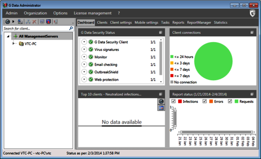 Aux mois de janvier et février 2014, AV-TEST a examiné 9 produits de sécurité destinés aux entreprises (Endpoint Protection) dans la configuration prédéfinie par le fabricant. Pour réaliser ces tests, les dernières versions de produits disponibles au public ont été utilisées. Grâce à la mise en jour en ligne, les versions ont pu être mises à jour à tout moment et leurs services « en nuages » étaient accessibles en permanence. AV-TEST n’a pris en compte que des scénarios de test réalistes et testé les produits par rapport aux menaces actuelles. Les produits ont dû prouver leurs capacités lors de l’utilisation de l’ensemble des fonctions et des niveaux de protection.
