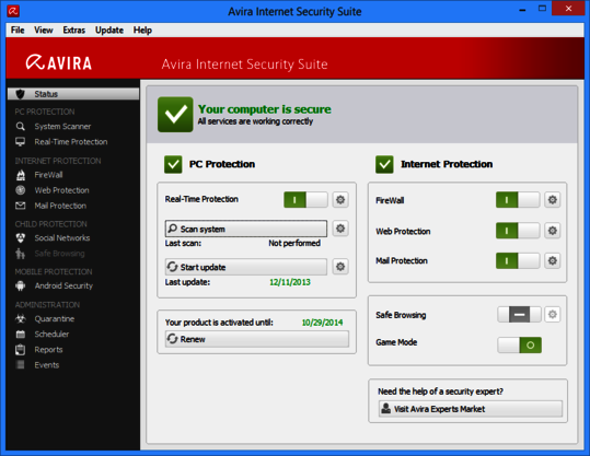Aux mois de novembre et décembre 2013, AV-TEST a examiné 25 produits de sécurité destinés aux particuliers, dans leur configuration standard. Pour réaliser ces tests, les dernières versions de produits disponibles au public ont été utilisées. Grâce à la mise en jour en ligne, les versions ont pu être mises à jour à tout moment et leurs services « en nuages » étaient accessibles en permanence. AV-TEST n’a pris en compte que des scénarios de test réalistes et testé les produits par rapport aux menaces actuelles. Les produits ont dû prouver leurs capacités lors de l’utilisation de l’ensemble des fonctions et des niveaux de protection.