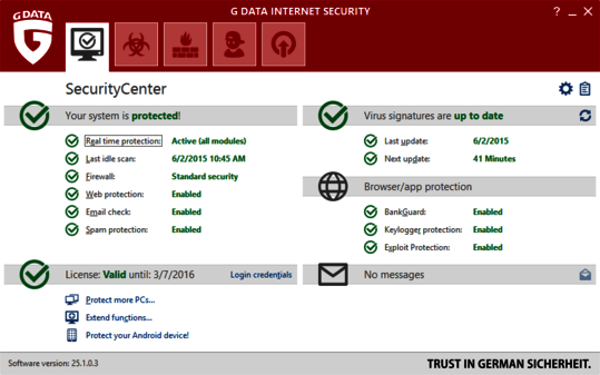 Aux mois de mai et juin 2015, AV-TEST a examiné 22 produits de sécurité destinés aux particuliers, dans leur configuration standard. Pour réaliser ces tests, les dernières versions de produits disponibles au public ont été utilisées. Grâce à la mise en jour en ligne, les versions ont pu être mises à jour à tout moment et leurs services « en nuages » étaient accessibles en permanence. AV-TEST n’a pris en compte que des scénarios de test réalistes et testé les produits par rapport aux menaces actuelles. Les produits ont dû prouver leurs capacités lors de l’utilisation de l’ensemble des fonctions et des niveaux de protection.