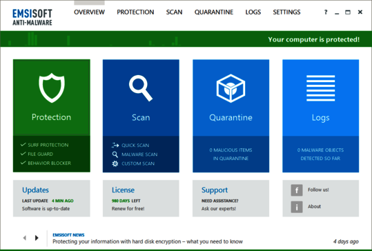 Protection contre les infections de logiciels malveillants (tels que les virus, vers informatiques ou chevaux de Troie)