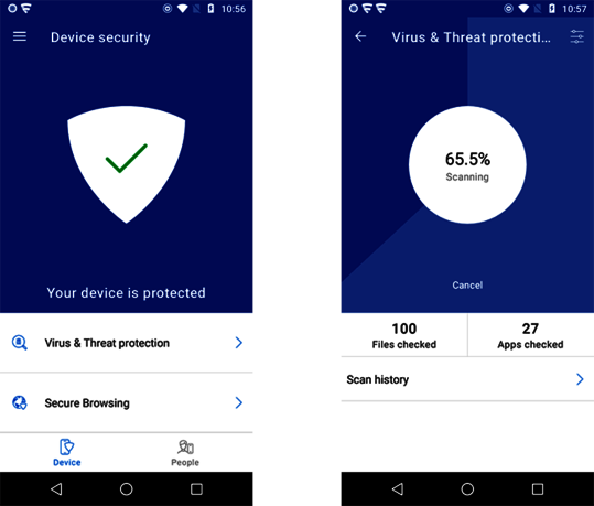 | Protection en temps réel contre les attaques de logiciels malveillants les plus récents sur des appareils Android 3.214 échantillons utilisés | 98% | 99,9% |