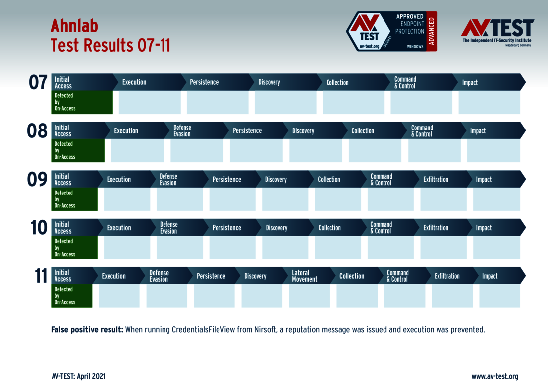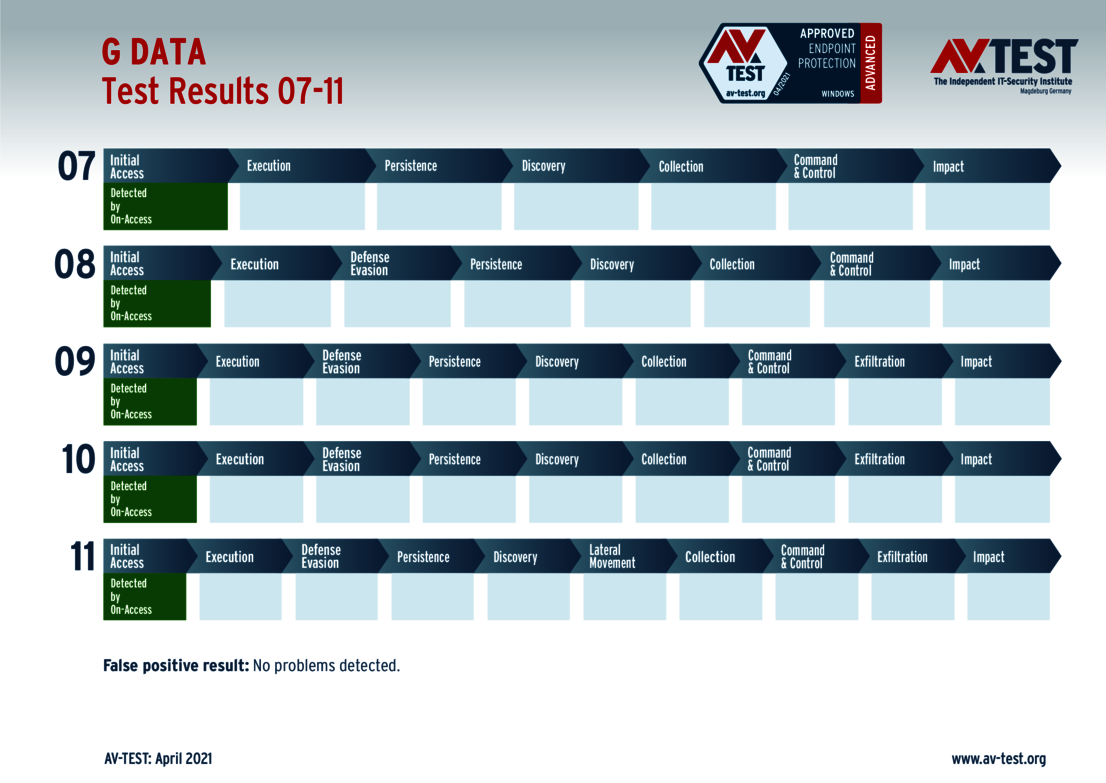 L’interprétation des résultats détaillés de ce test dépend de l’environnement utilisé, de la configuration et de l’utilisation des produits correspondants. C’est pourquoi AV-TEST met à votre disposition des résultats détaillés dans le cadre d’un conseil personnalisé et vous offre en outre des tests adaptés à votre infrastructure. N’hésitez pas à utiliser notre formulaire de contact pour vous mettre en relation avec nous.