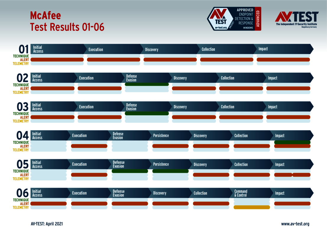 Pour réussir ce test et obtenir un certificat AV-TEST, les solutions EPP devaient parer 50 % des attaques simulées et les solutions EDR devaient détecter et signaler 50 % des tactiques utilisées dans les attaques. L’évaluation des attaques testées a été divisée en deux parties selon l’étendue des prestations des solutions testées.