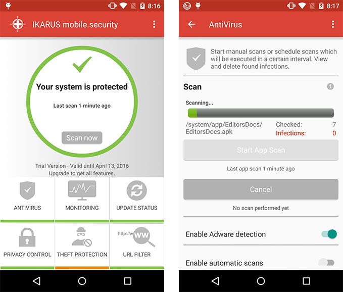 Im März 2016 hat AV-TEST 25 Sicherheitsprodukte für Android untersucht. Dabei wurden immer die aktuellsten öffentlich verfügbaren Versionen der Produkte für den Test verwendet. Diese konnten sich jederzeit per Online-Update aktualisieren und ihre „In-the-Cloud“-Services nutzen. AV-TEST berücksichtigte nur realistische Testszenarien und prüfte die Produkte gegen aktuelle Bedrohungen. Die Produkte mussten ihre Fähigkeiten unter Einsatz sämtlicher Funktionen und Schutzebenen unter Beweis stellen.