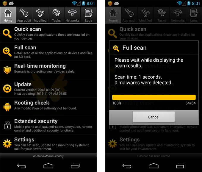 Im November 2013 hat AV-TEST 28 Sicherheitsprodukte für Android untersucht. Dabei wurden immer die aktuellsten öffentlich verfügbaren Versionen der Produkte für den Test verwendet. Diese konnten sich jederzeit per Online-Update aktualisieren und ihre „In-the-Cloud“-Services nutzen. AV-TEST berücksichtigte nur realistische Testszenarien und prüfte die Produkte gegen aktuelle Bedrohungen. Die Produkte mussten ihre Fähigkeiten unter Einsatz sämtlicher Funktionen und Schutzebenen unter Beweis stellen.