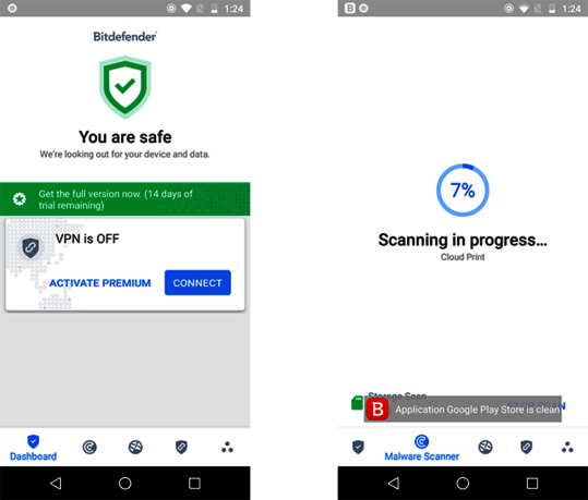 | Echtzeit-Schutz gegen neueste Malware-Attacken auf Android-Geräte 4.365 verwendete Samples | 97,4% | 100% |