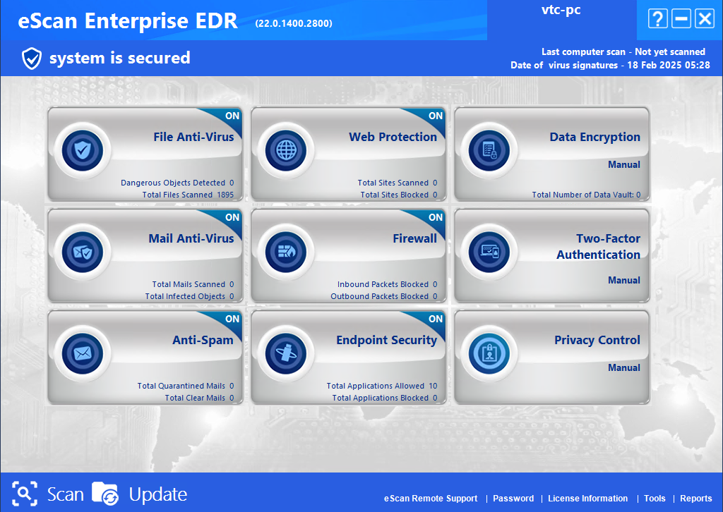 Im Januar und Februar 2025 hat AV-TEST 18 Sicherheitsprodukte für Unternehmen (Endpoint Protection) in der vom Hersteller vorgegebenen Konfiguration untersucht. Es wurden immer die aktuellsten öffentlich verfügbaren Versionen der Produkte für den Test verwendet. Diese konnten sich jederzeit per Online-Update aktualisieren und ihre „In-the-Cloud“-Services nutzen. AV-TEST berücksichtigte nur realistische Testszenarien und prüfte die Produkte gegen aktuelle Bedrohungen. Die Produkte mussten ihre Fähigkeiten unter Einsatz sämtlicher Funktionen und Schutzebenen unter Beweis stellen. Weitere Informationen zum AMTSO-Konformitätsstatus dieses Tests finden Sie hier.