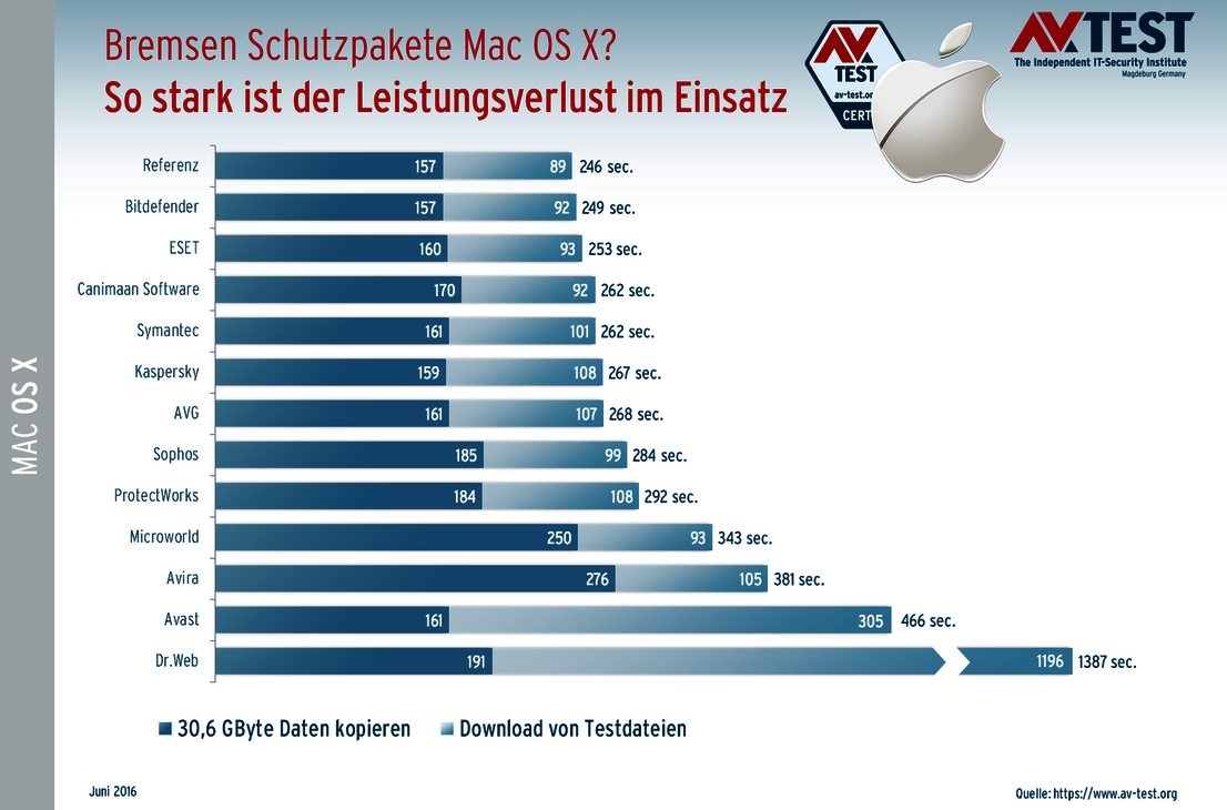 Mac OS X nutzt zwar bereits systemeigene Schutzeinrichtungen, wer aber auf Nummer sicher gehen will, der rüstet mit einer guten Schutz-Software weiter auf. Das Magdeburger Institut AV-TEST hat 12 aktuelle Programme geprüft, wobei einige nicht gut aussehen.