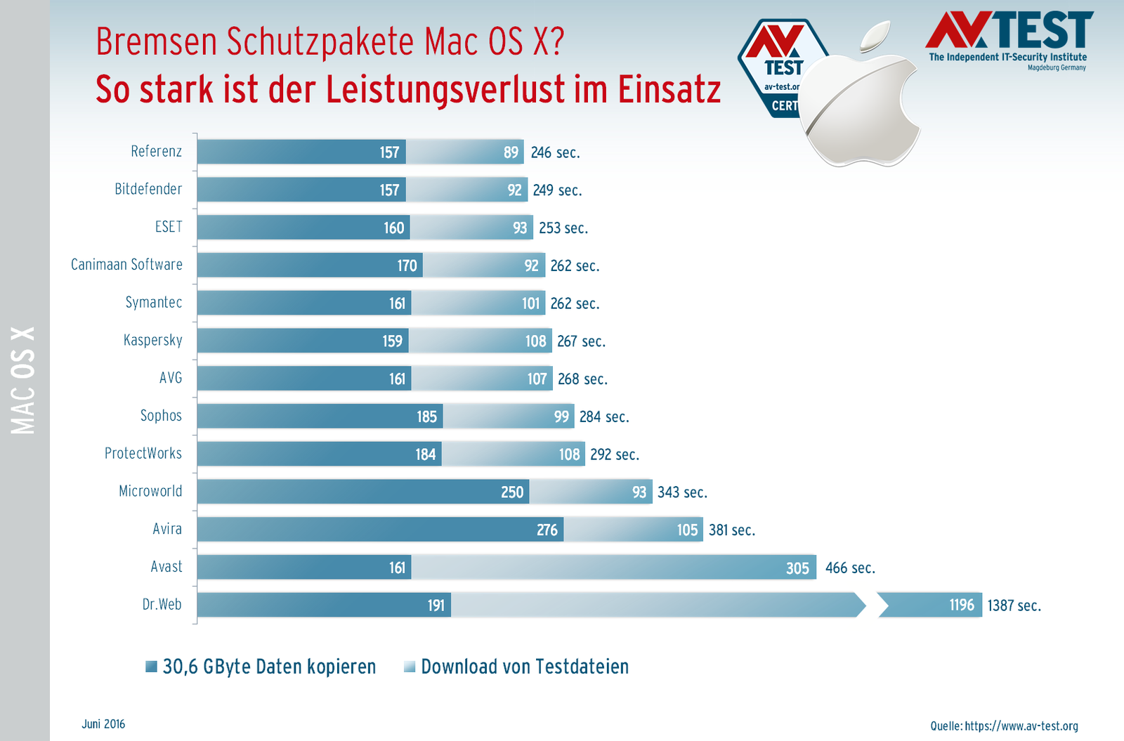 Mac OS X nutzt zwar bereits systemeigene Schutzeinrichtungen, wer aber auf Nummer sicher gehen will, der rüstet mit einer guten Schutz-Software weiter auf. Das Magdeburger Institut AV-TEST hat 12 aktuelle Programme geprüft, wobei einige nicht gut aussehen.