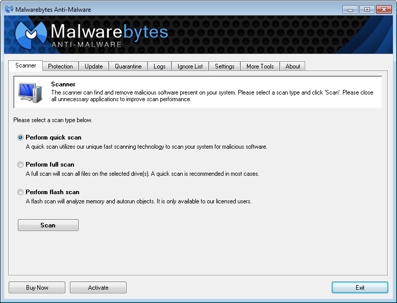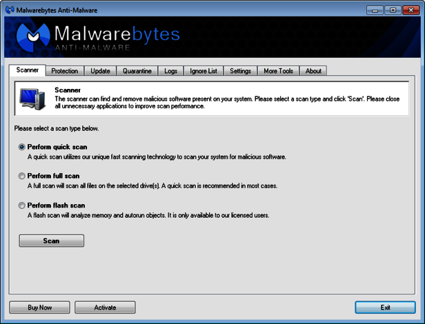 - die von vielen IT-Magazinen empfohlene Lösung Malwarebytes Anti-Malware Free