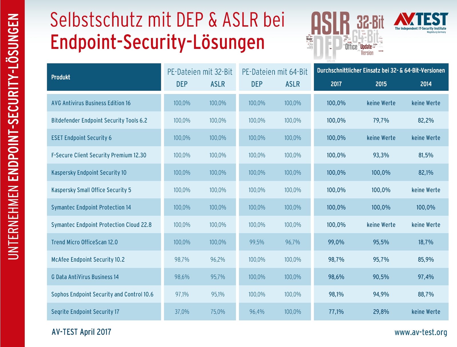 Einzel- und Vergleichswerte von DEP & ASLR in Unternehmens-Lösungen