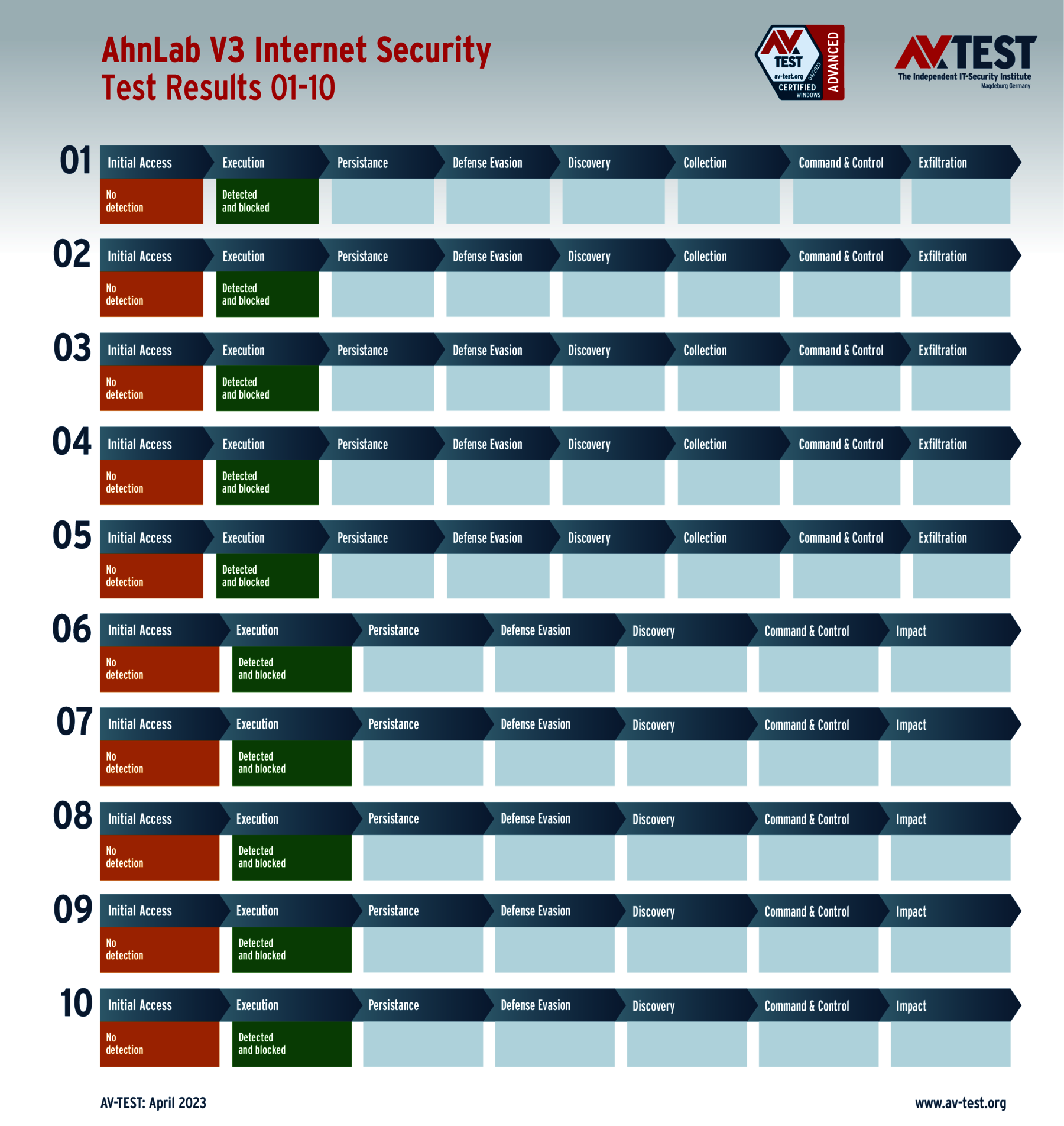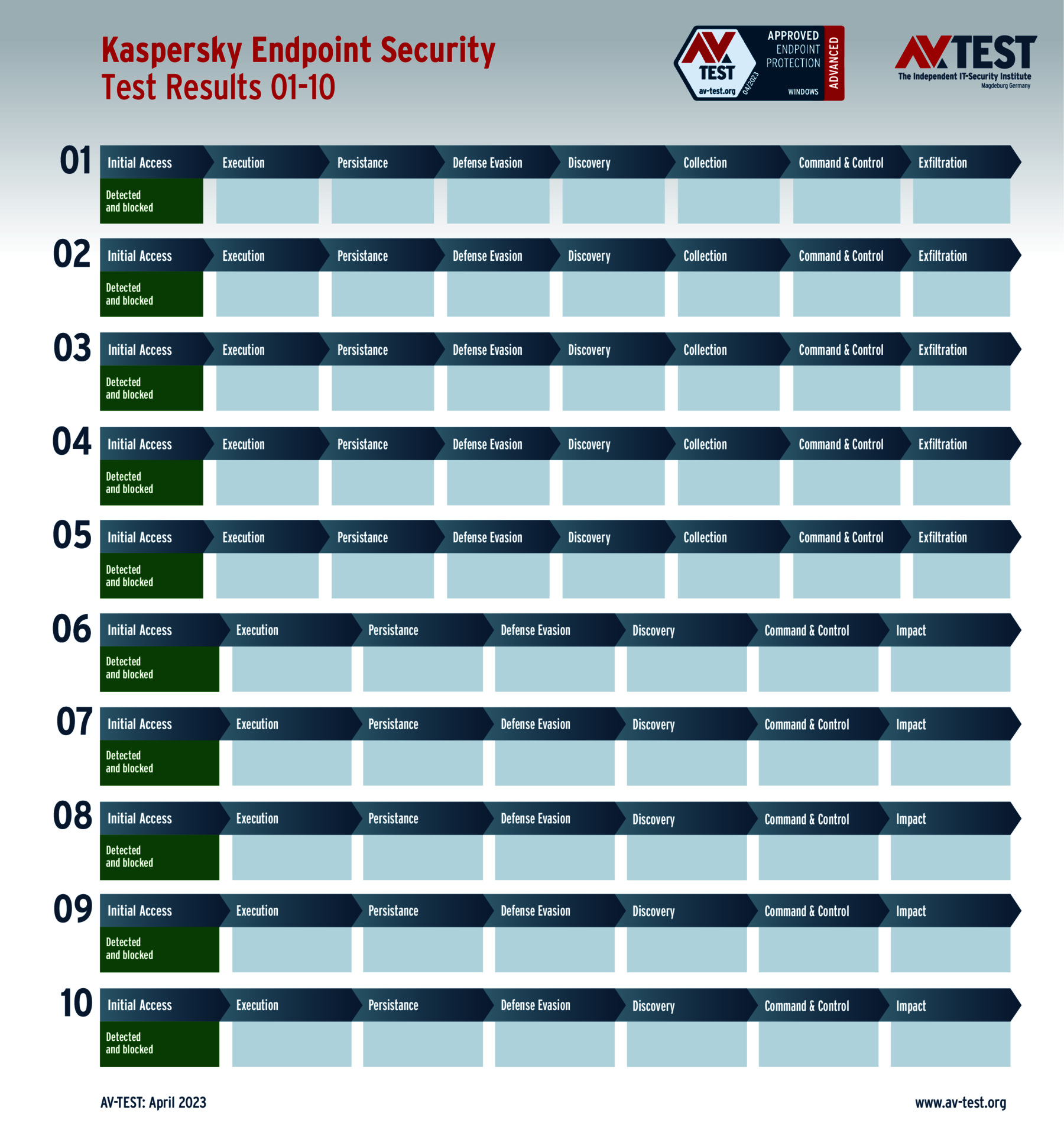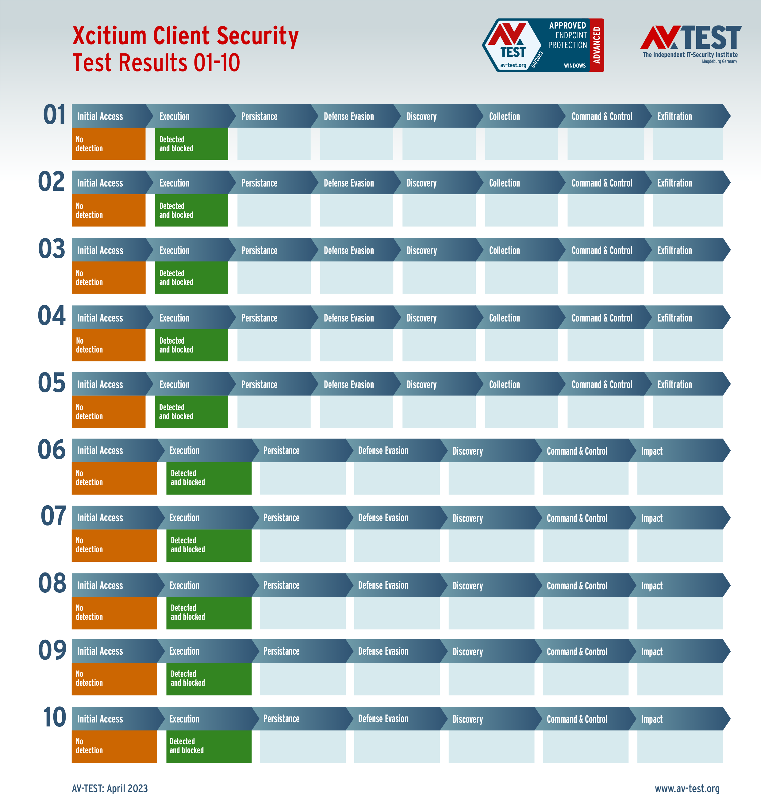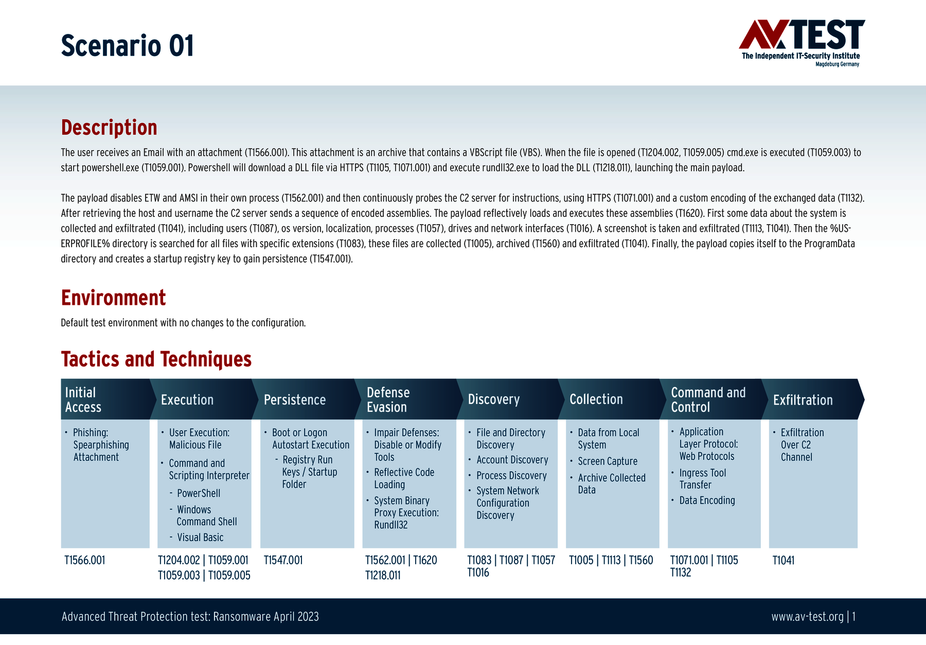 Alle Angriffs-Szenarien sind dokumentiert nach dem Standard der MITRE ATT&CK-Datenbank. Die einzelnen Unterpunkte, z.B. „T1566.001,“ stehen in der MITRE-Datenbank für „Techniques“ unter „Phishing: Spearphishing Attachment“. Jeder Testschritt ist so unter Fachleuten definiert und lässt sich nachvollziehen. Zusätzlich sind alle Angriffstechniken erklärt und wie dabei die Malware zum Zuge kommt.