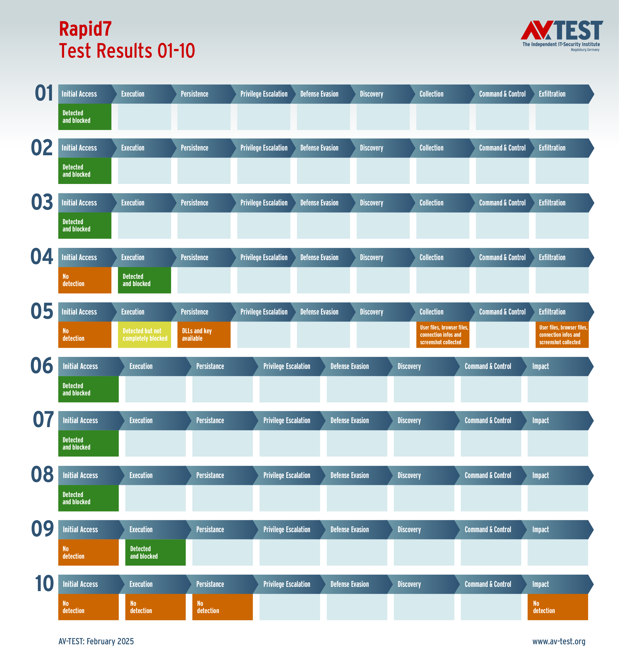 Die Lösung von Rapid7 erkennt in einem Szenario die Ransomware nicht, wodurch diese ungehindert das System verschlüsselt. Das kostet in der Wertung die vollen 3 Punkte. In einem weiteren Fall mit einem Infostealer wird der Angreifer zwar erkannt, aber nicht blockiert. Die Malware kann die Daten scannen und stehlen. Ein weiterer Abzug von 3,5 Punkten. Somit steht Rapid7 am Ende mit einem Punkte-Score von 28,5 Punkten statt 35 da.
