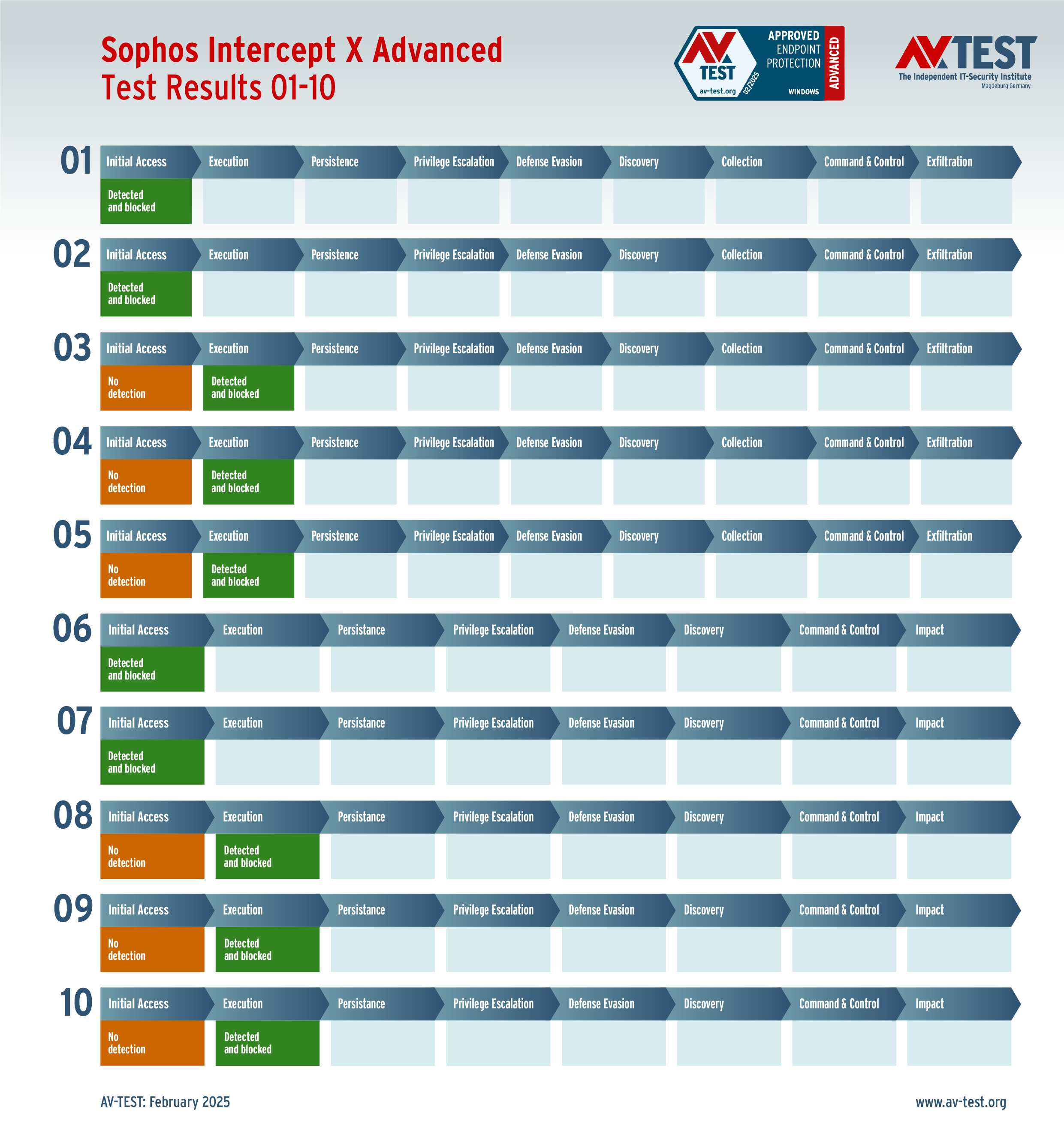 Nur in sehr wenigen Fällen erkennen die Schutzprodukte die Angreifer nicht oder halten sie nach einer Erkennung nicht auf. Die Punktewerte im Schutz-Score zeugen davon.