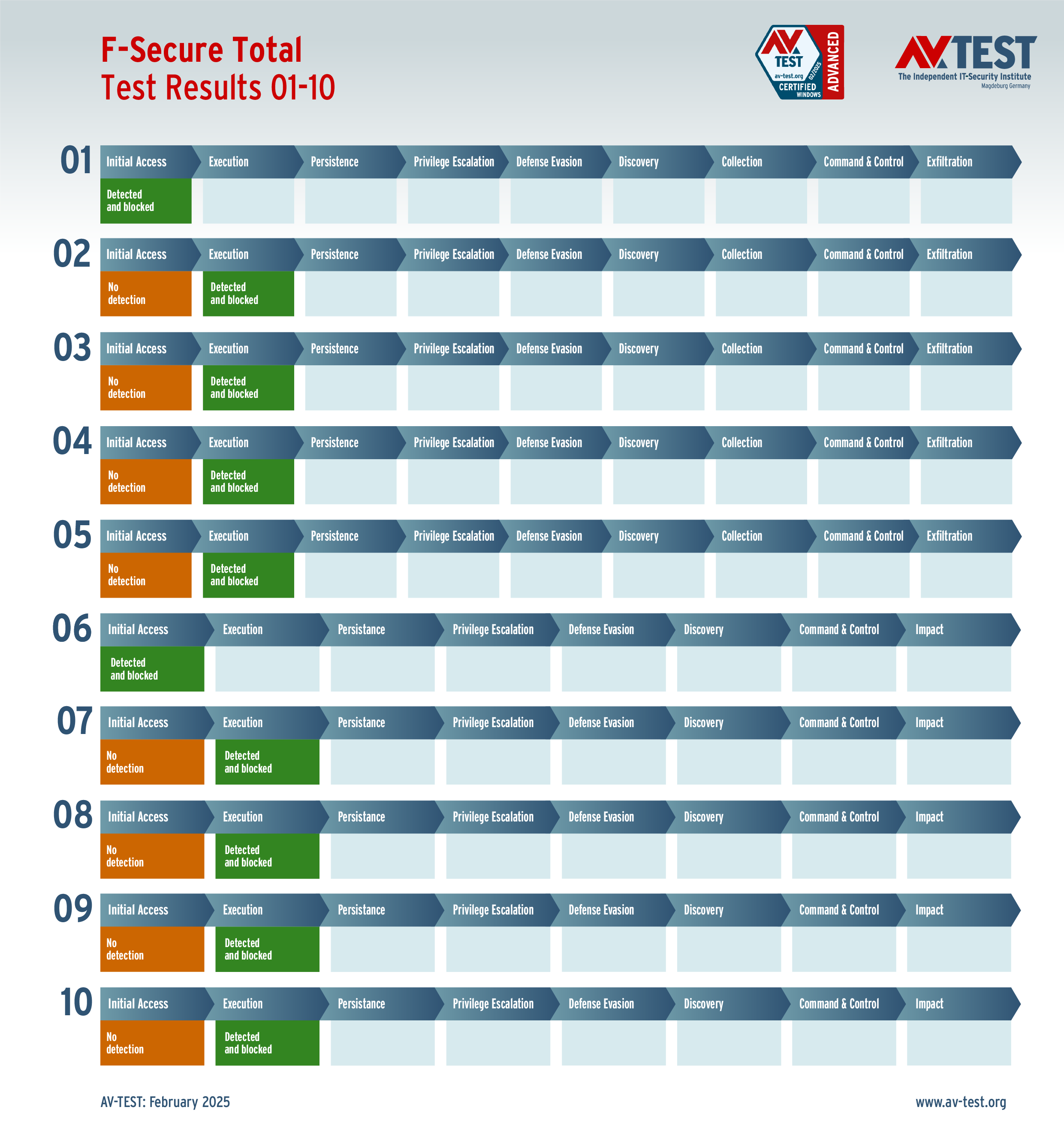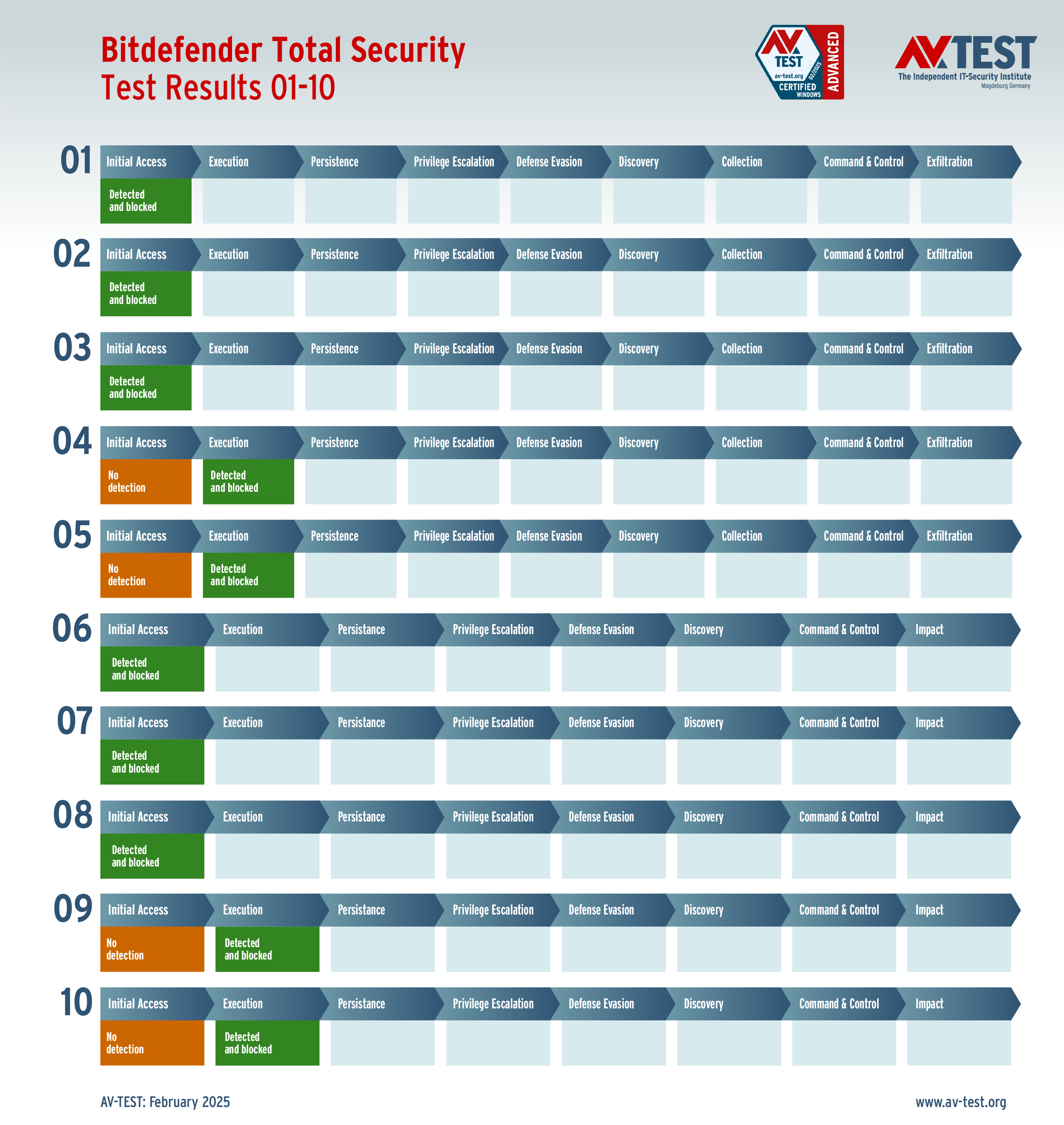 Dennoch muss man klar festhalten: 7 Produkte für private Anwender und 13 Lösungen für Unternehmen glänzen in alle 10 Angriffsszenarien mit einer perfekten Abwehrleistung und erhalten dafür verdient die Auszeichnung mit einer vollen Punktzahl samt Testzertifikat.