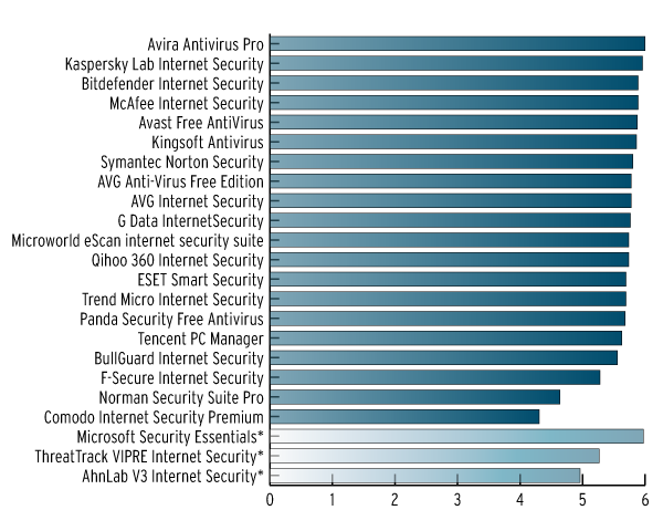 * Die folgenden Produkte haben nicht alle Windows-Tests im Jahr 2014 bestanden und wurden daher nicht für den AWARD 2014 berücksichtigt: AhnLab V3 Internet Security, ThreatTrack VIPRE Internet Security, Microsoft Security Essentials/Windows Defender und Microsoft System Center Endpoint Protection. Im Bereich Mobile Security haben G Data Internet Security und Bornaria Mobile Security nicht alle Prüfungen bestanden. Für die Berechnung der Jahresergesamtgebnisse wurden die exakten, nicht gerundeten Werte der jeweiligen Tests berücksichtigt.