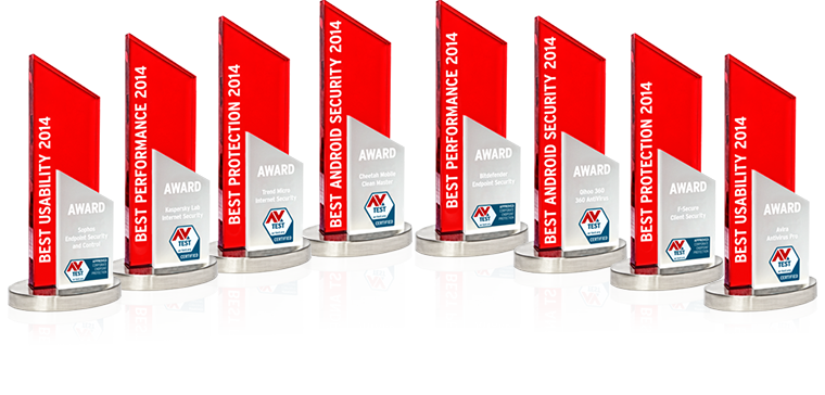 Alle prämierten Produkte haben sich 2014 in den Laboren von AV-TEST permanent den Zertifizierungstests gestellt. Ausgezeichnet wird je ein Produkt für private Nutzer und eines für Unternehmen in den Kategorien PROTECTION (Schutzwirkung), PERFORMANCE (Geschwindigkeit) und USABILITY (Benutzbarkeit). Ebenfalls ausgezeichnet wird das beste Produkt in der Kategorie ANDROID SECURITY. Wegen eines Punktegleichstands werden 2014 in dieser Kategorie zwei Produkte prämiert. Zusätzlich ehrt AV-TEST noch einmal die bereits prämierten Produkte des AWARD BEST REPAIR 2014.