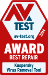 Der AV-TEST AWARD BEST REPAIR 2014 prämiert die Produkte, die ein Windows-System nach einer Malware-Attacke am besten reinigen und reparieren können. Der Award geht an das Kaspersky Virus Removal Tool und an das Reinigungs-Tool Malwarebytes Anti-Malware Free.