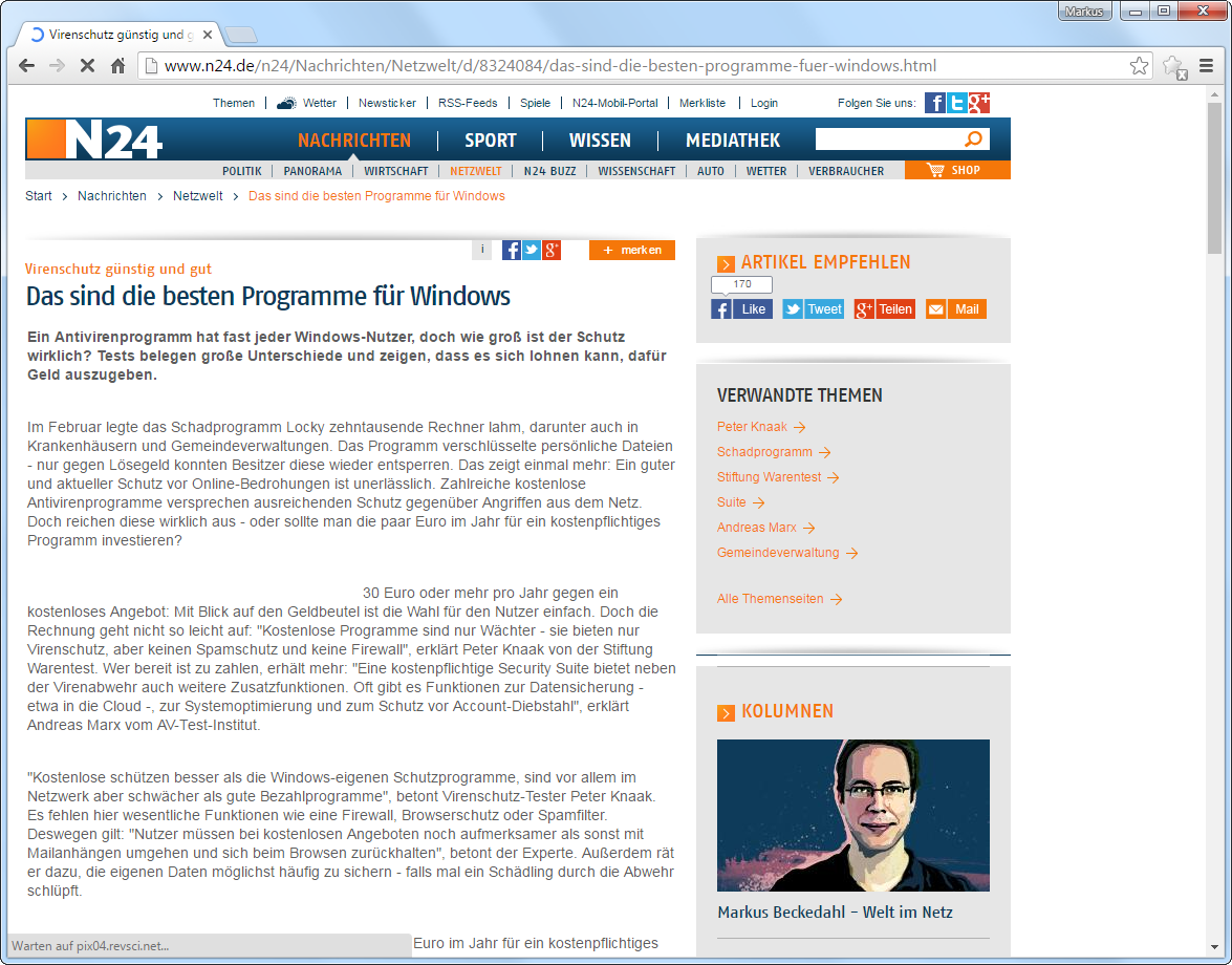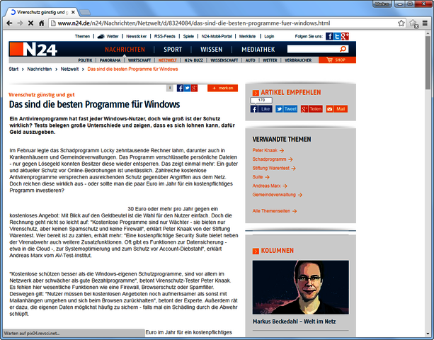 Falls ein wichtiger Artikel in der Aufzählung fehlt, so können Portal-Betreiber diesen bei AV-TEST melden.